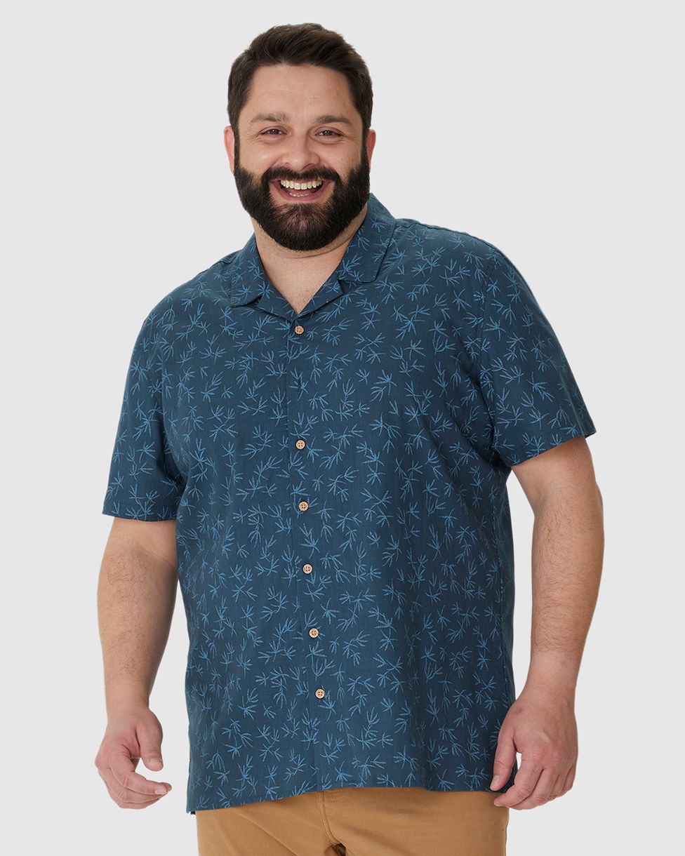 A Camisa Masculina Plus Size Estampada Manga Curta Em Linho/Algodão traz estilo e frescor. Feita em linho com algodão, é leve, respirável e perfeita para o calor. A estampa moderna adiciona personalidade. Uma peça versátil e confortável para o dia a dia do homem plus size.