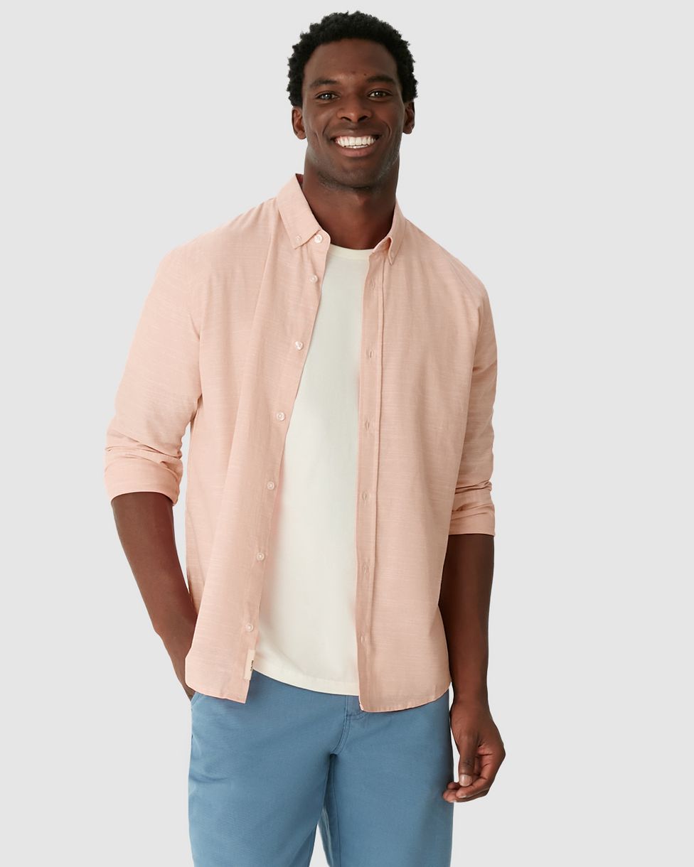 Camisa Masculina Regular Abotoamento Frontal Em Algodão Texturizado Rosa - G