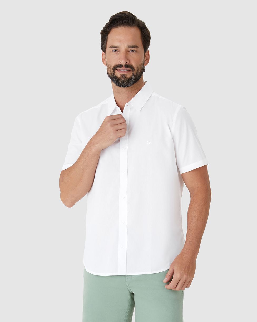 Camisa Masculina Regular Manga Curta Bordado Peitoral Em Tricoline