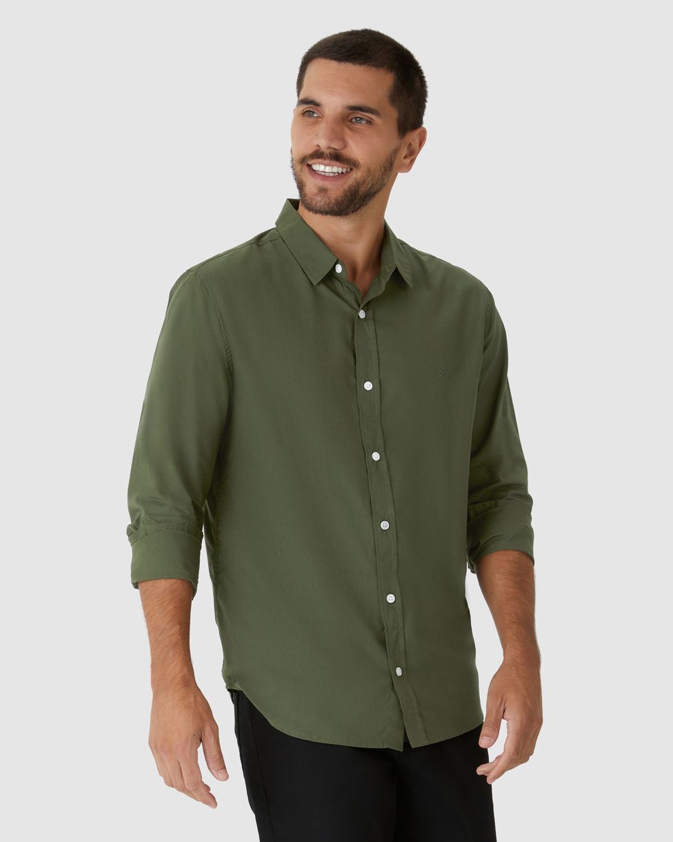 Camisa Masculina Regular Manga Longa Em Tricoline