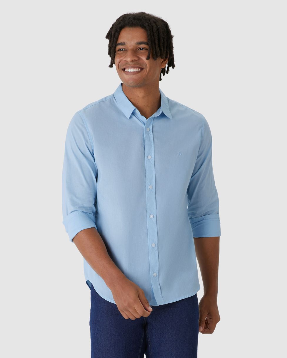 Camisa Masculina Regular Manga Longa Em Tricoline