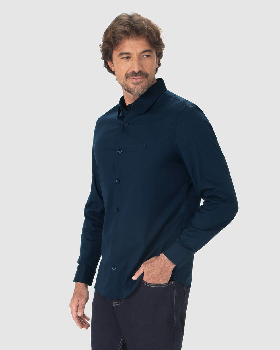 Camisa Masculina Slim Manga Longa Em Tricoline Stretch