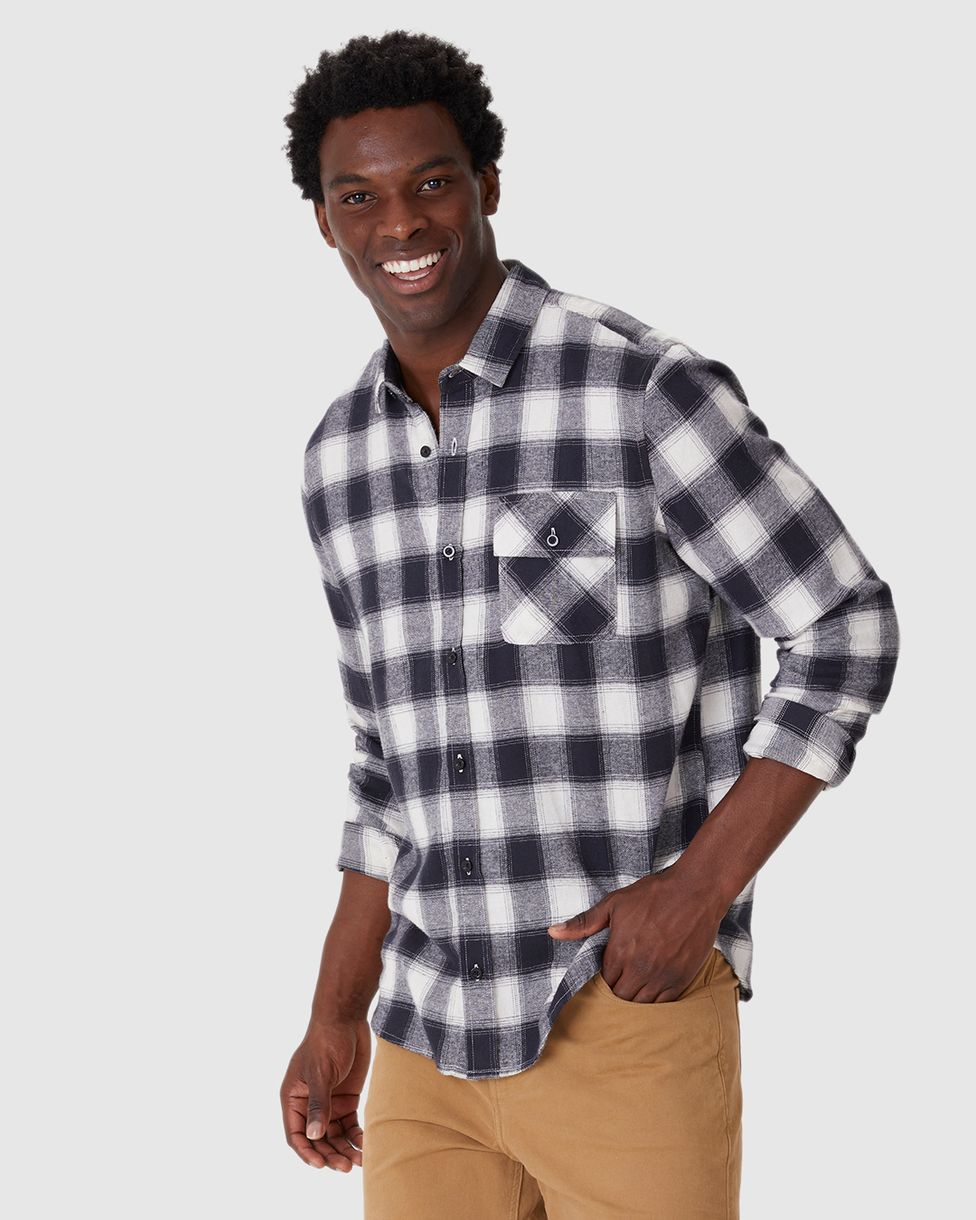 Camisa Masculina Xadrez Bolso Peitoral Em Flanela
