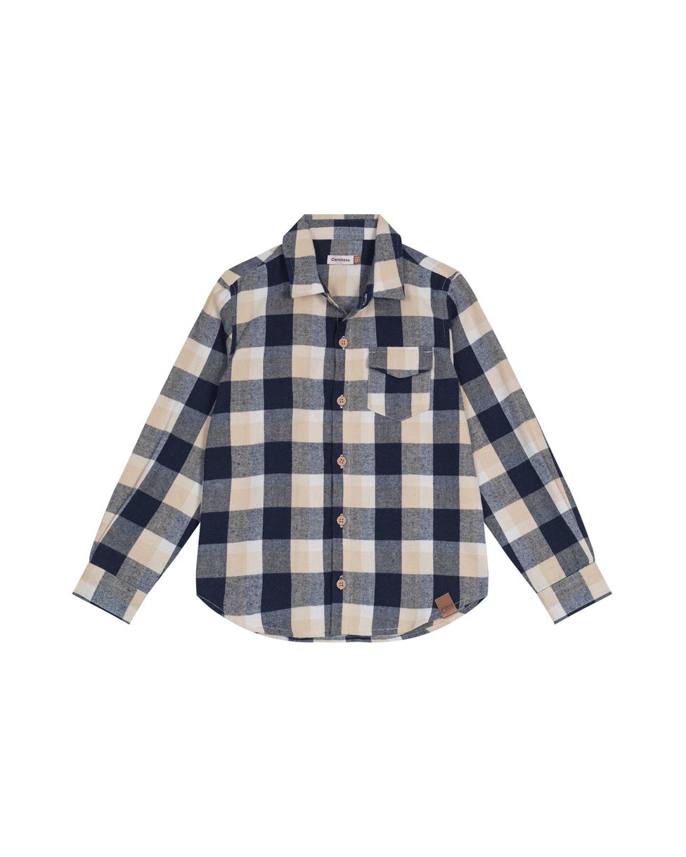 Camisa confeccionada em tecido flanelado. A camisa Xadrez apresenta gola padrão, mangas longas, abertura por botões. Com detalhe de bolso frontal e etiqueta decorativa na barra. Um modelo com estampa clássica para compor no guarda-roupa das crianças!