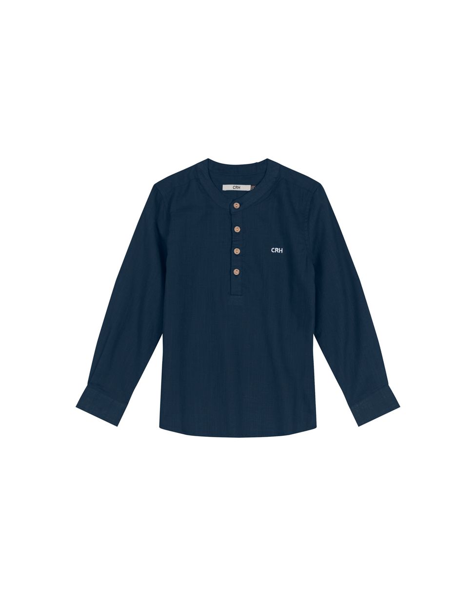 Camisa confeccionada em linho leve. Um modelo perfeita para compor um visual mais arrumadinho das crianças, essa peça possui gola redonda com peitilho frontal com abotoamento, mangas longas, e bordado Carinhoso no peitoral. Aposte com calça de sarja Carinhoso, para um visual descontraído!