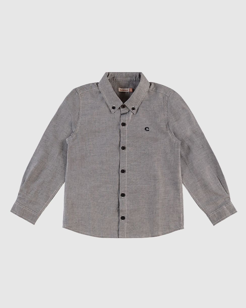 Camisa Menino Tradicional Manga Longa Em Algodão Texturizado Carinhoso