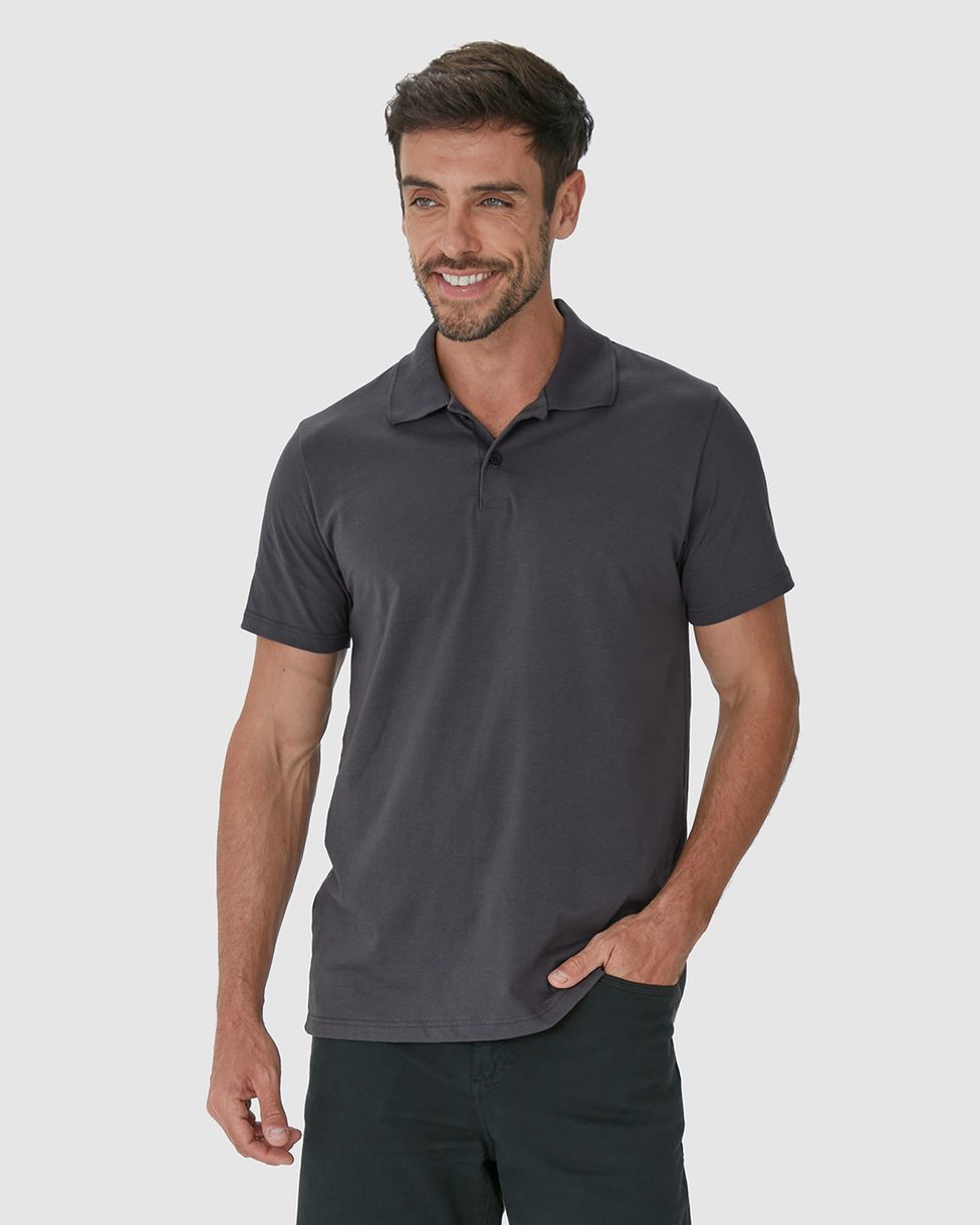 Camisa Polo Básica Masculina Peitilho Frontal Em Algodão
