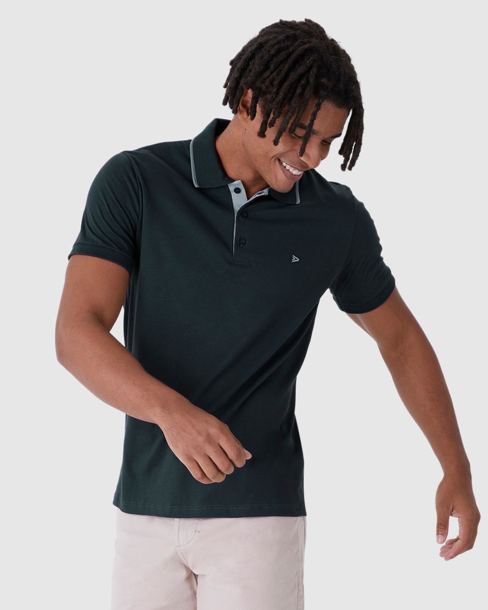 • Design: clássico polo, com gola dobrável e fechamento em botões