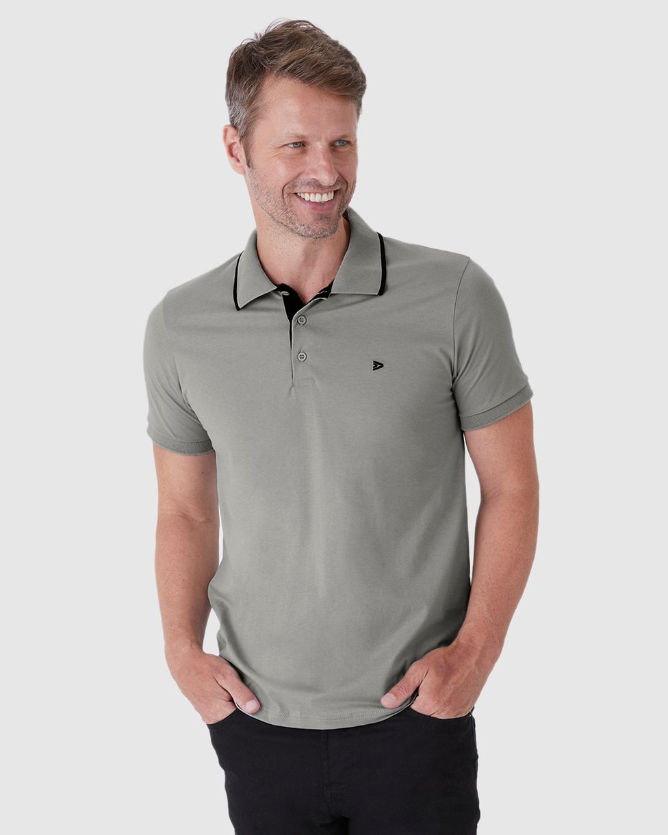 • Design: clássico polo, com gola dobrável e fechamento em botões