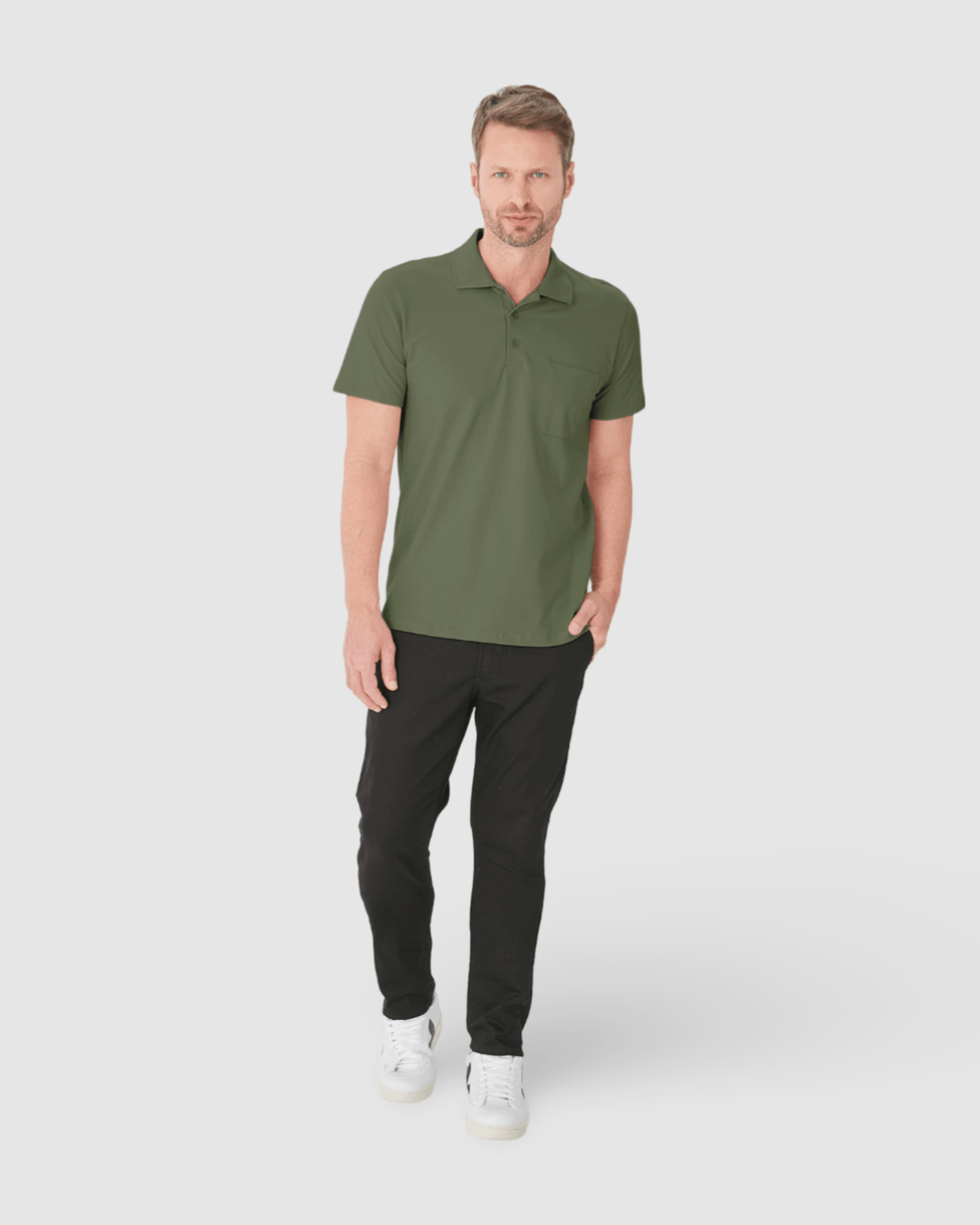 Camisa Polo Básica Masculina Gola Esporte E Bolso Piquet Stretch