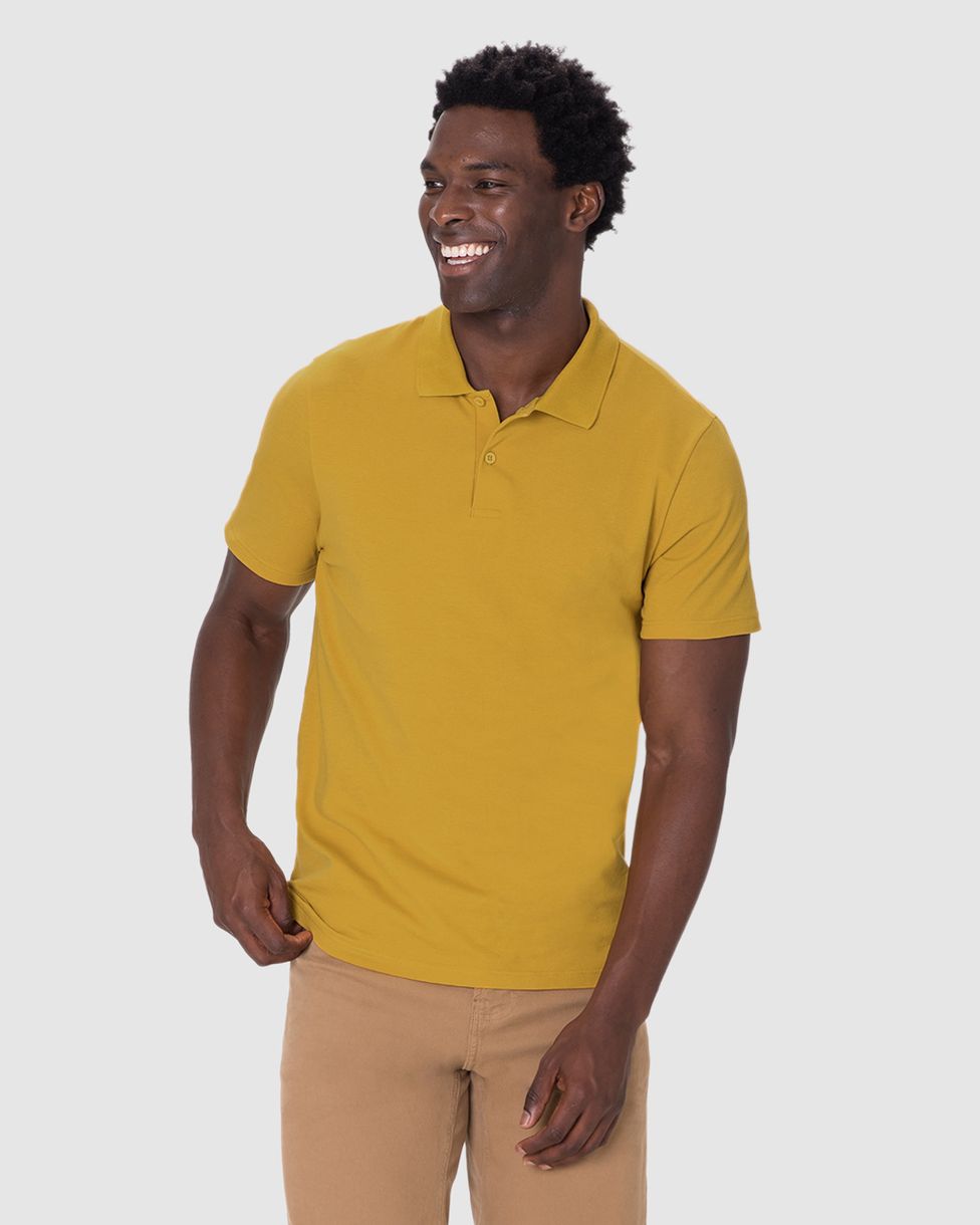 Camisa Polo Básica Masculina Gola Retilínea Em Piquet Stretch