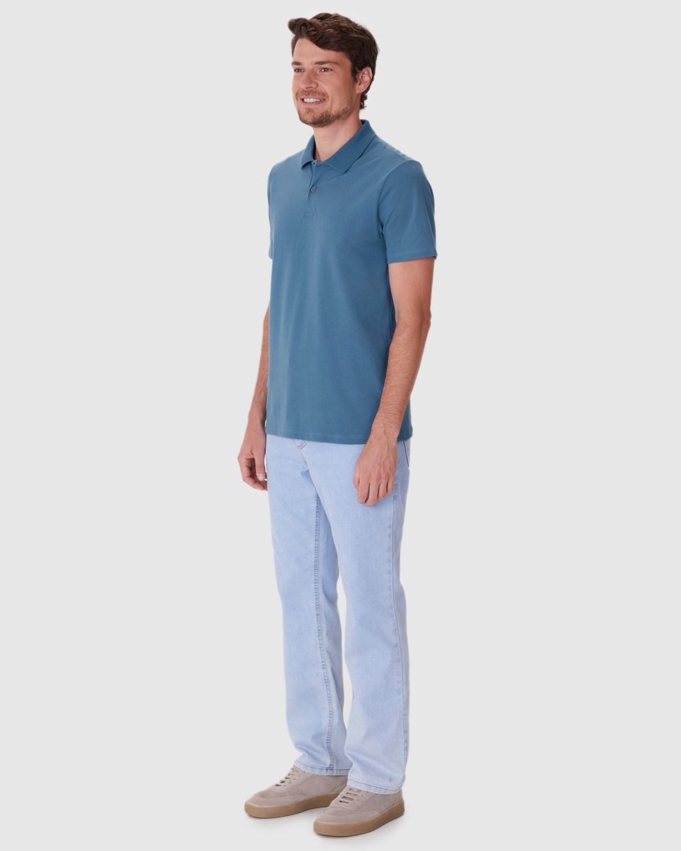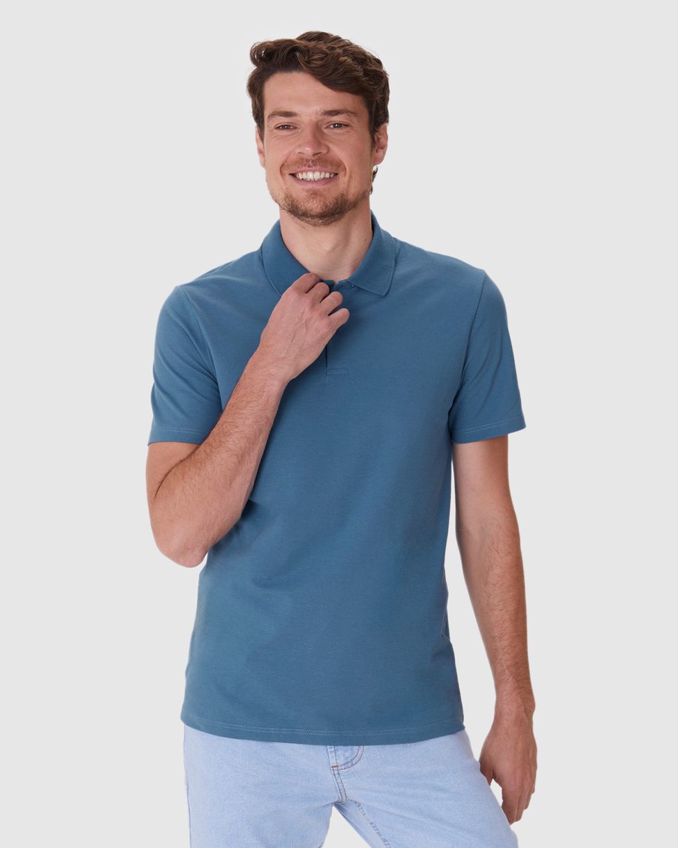 Camisa Polo Básica Masculina Gola Retilínea Em Piquet Stretch