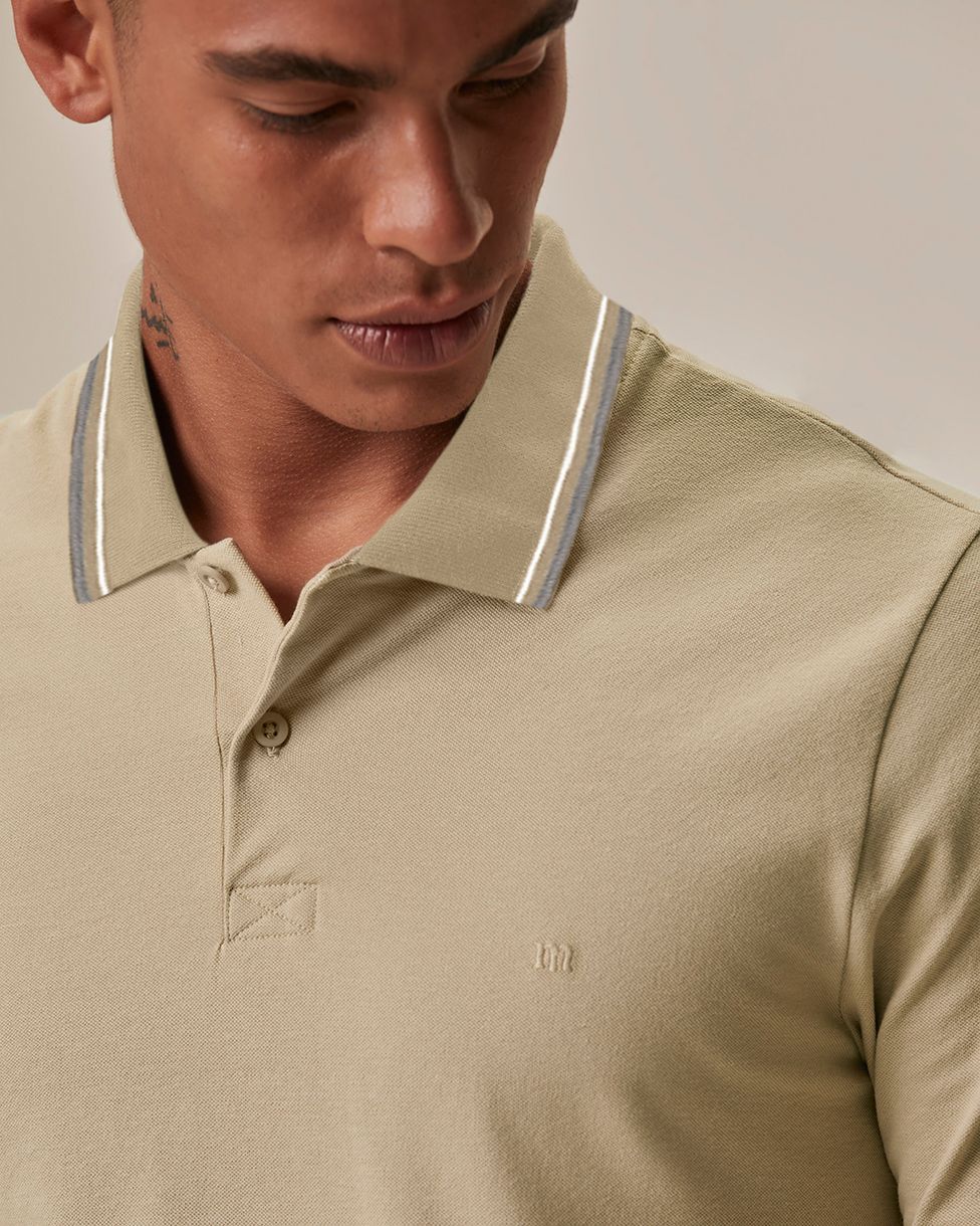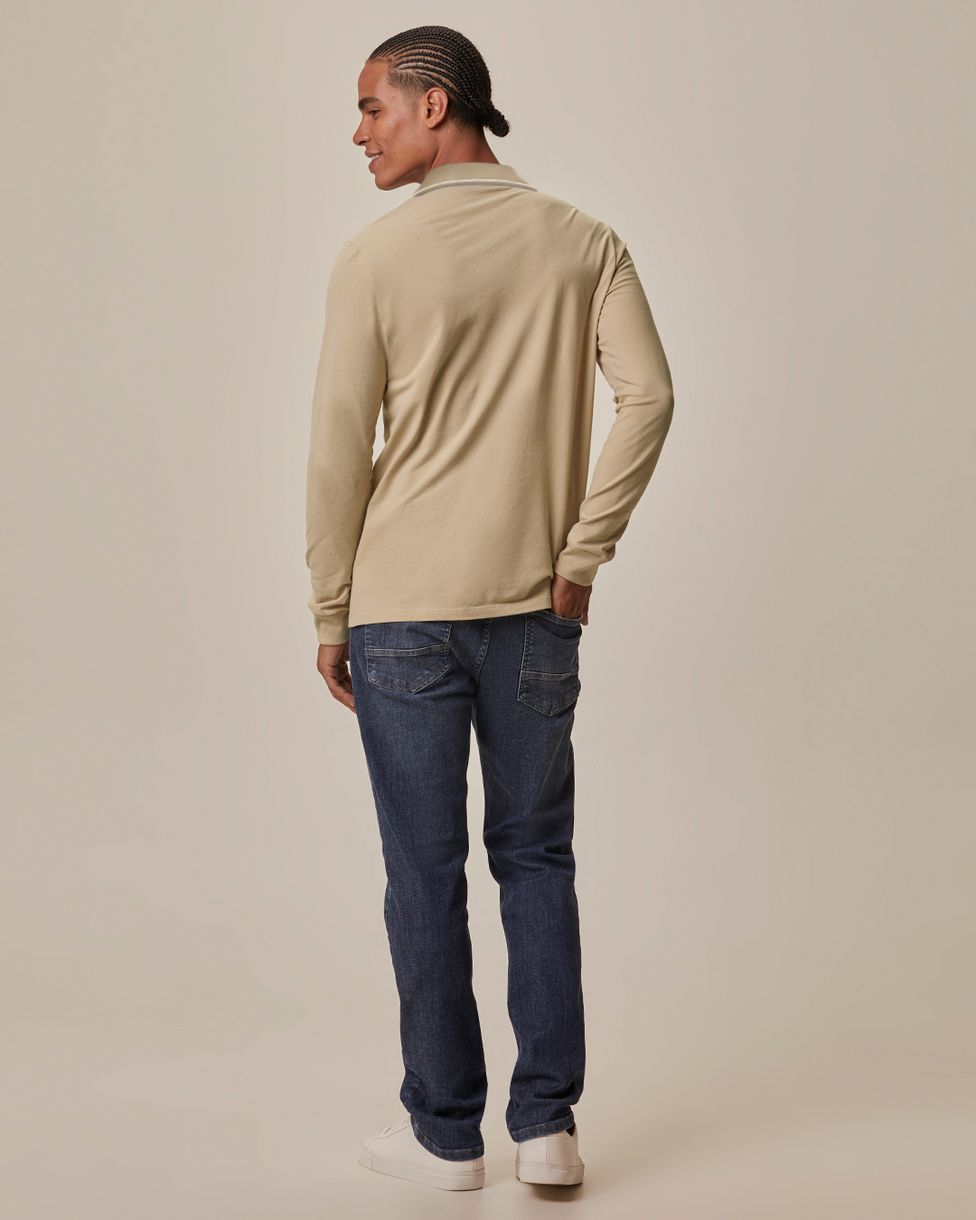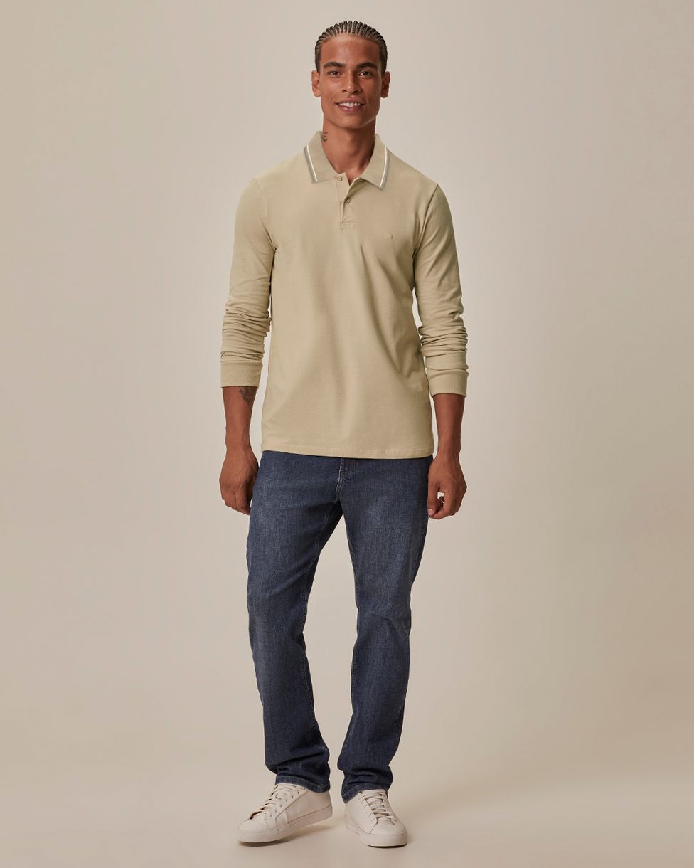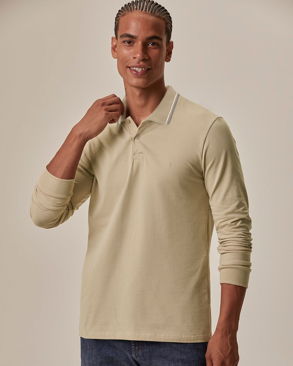 Camisa Polo Básica Masculina Gola Retilínea Manga Longa Em Piquet Stretch