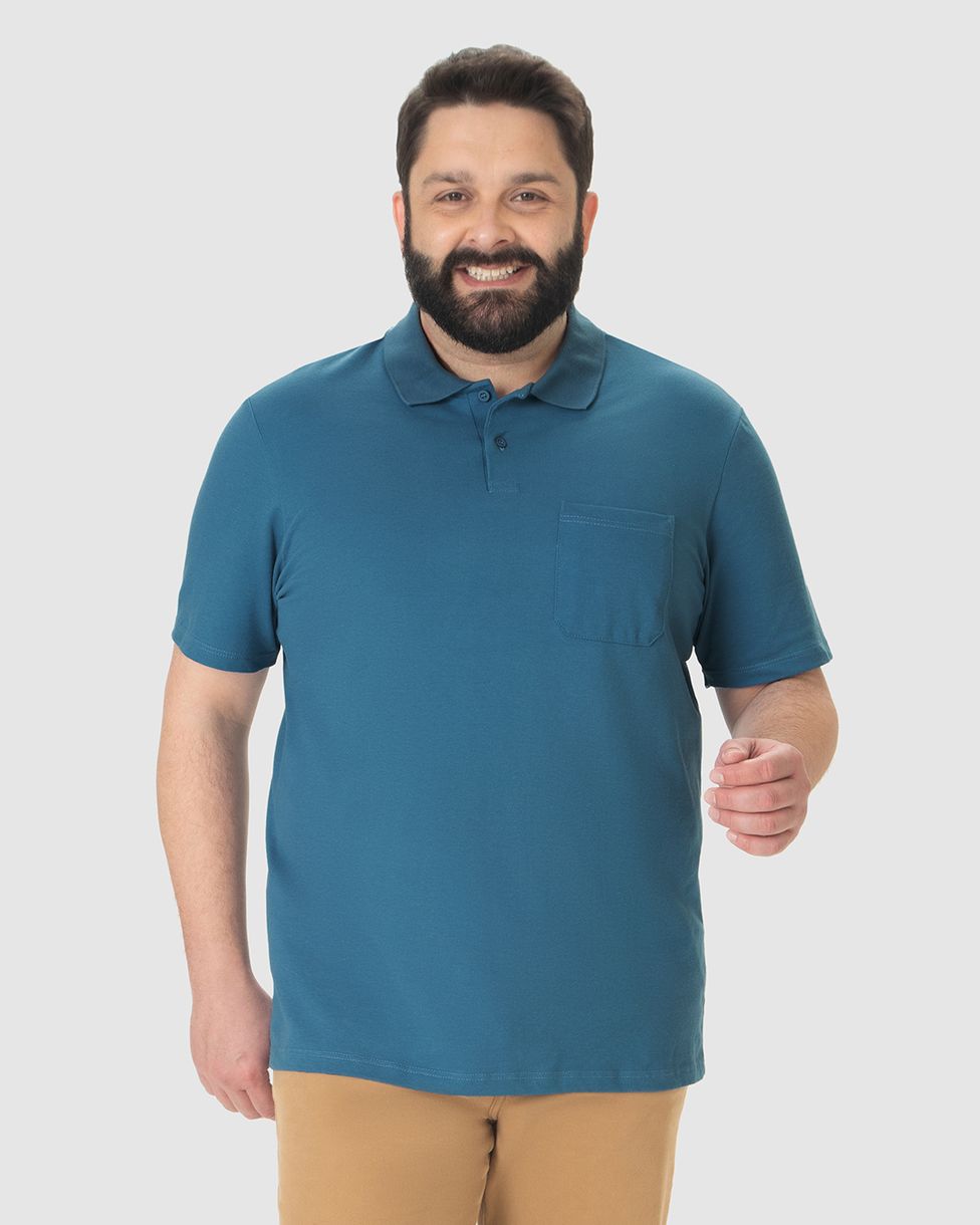 Camisa Polo Básica Masculina Plus Size Bolso Frontal Em Piquet Stretch
