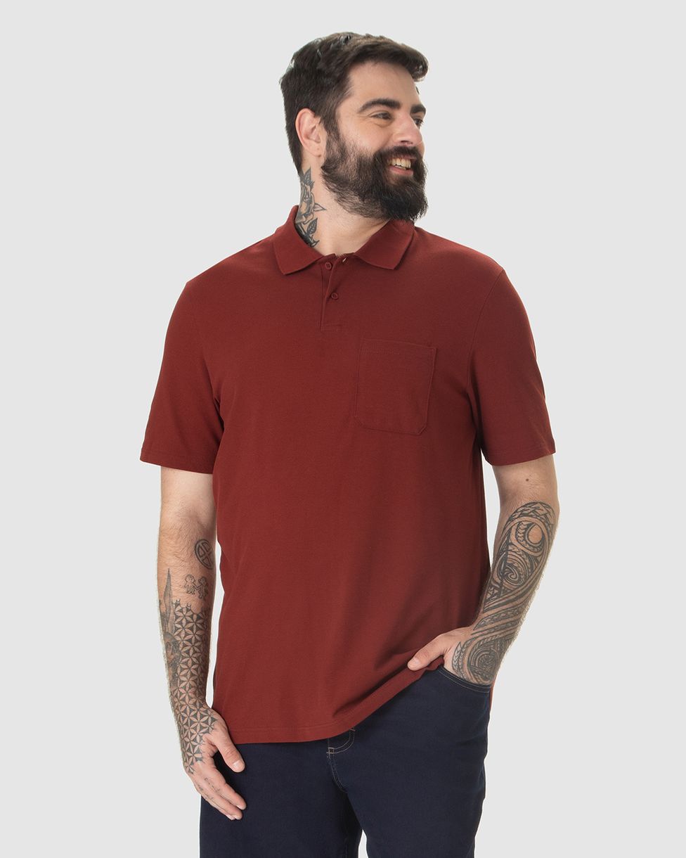 Camisa Polo Básica Masculina Plus Size Bolso Frontal Em Piquet Stretch