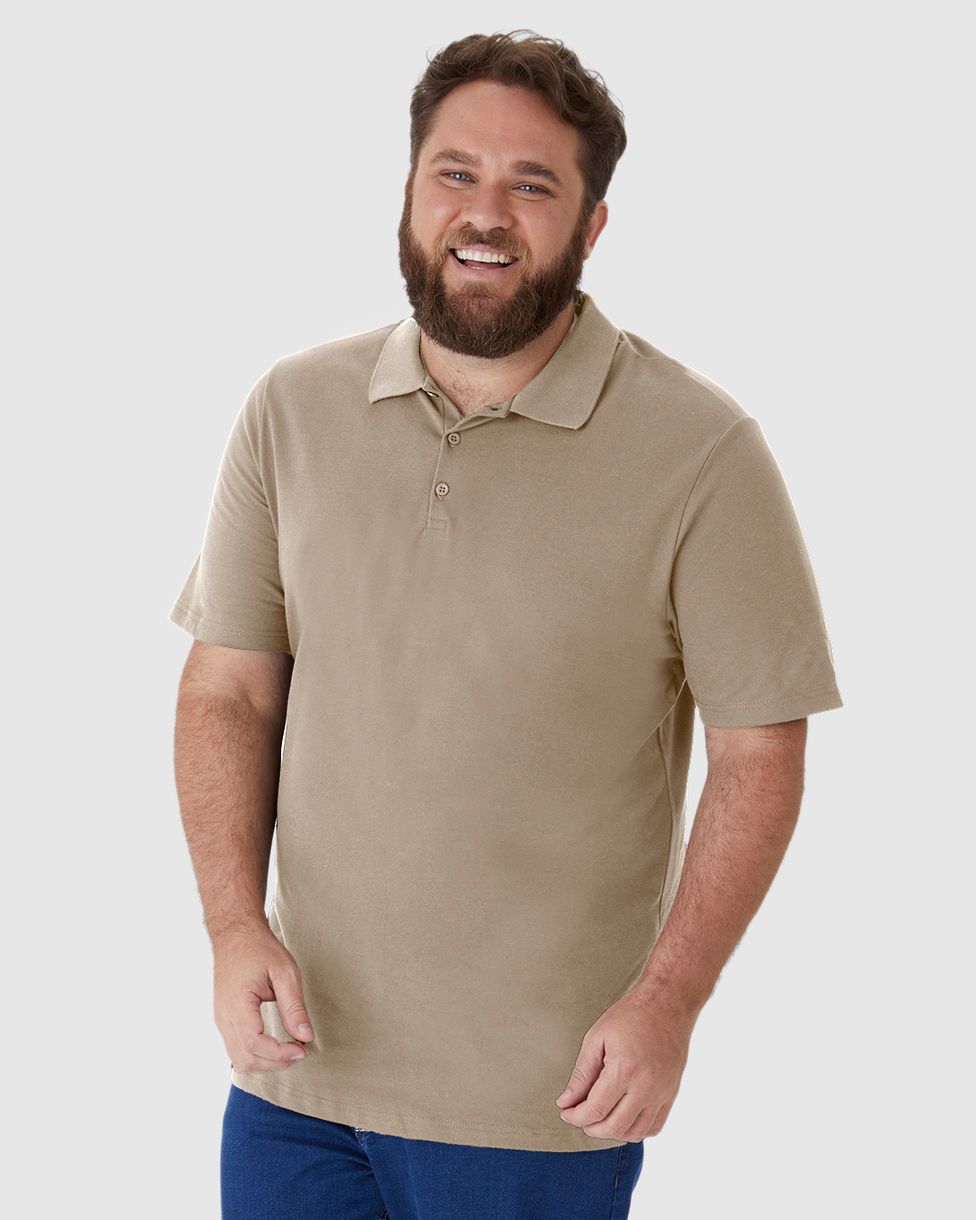 Camisa Polo Básica Masculina Plus Size Em Piquet Stretch