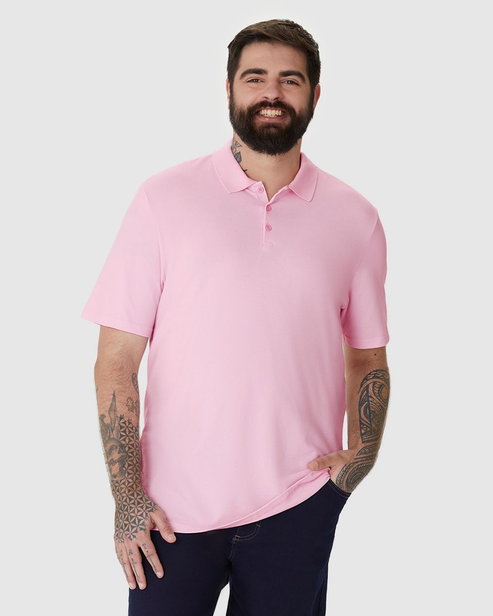 Camisa Polo Básica Masculina Plus Size Em Piquet Stretch