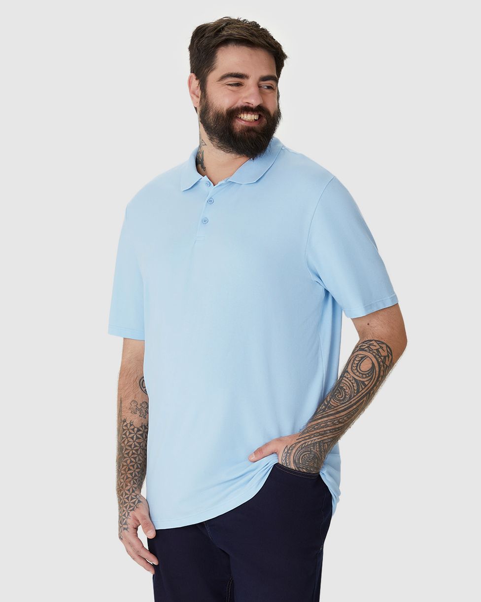 Camisa Polo Básica Masculina Plus Size Em Piquet Stretch