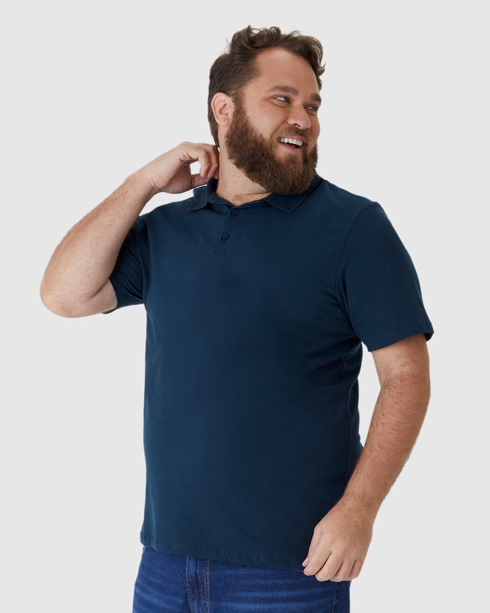 Camisa Polo Básica Masculina Plus Size Em Piquet Stretch