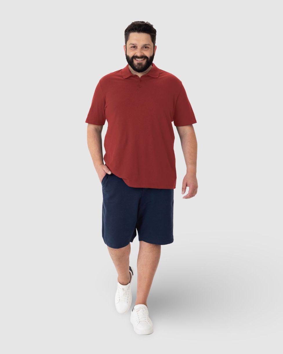Camisa Polo Básica Masculina Plus Size Em Piquet Stretch