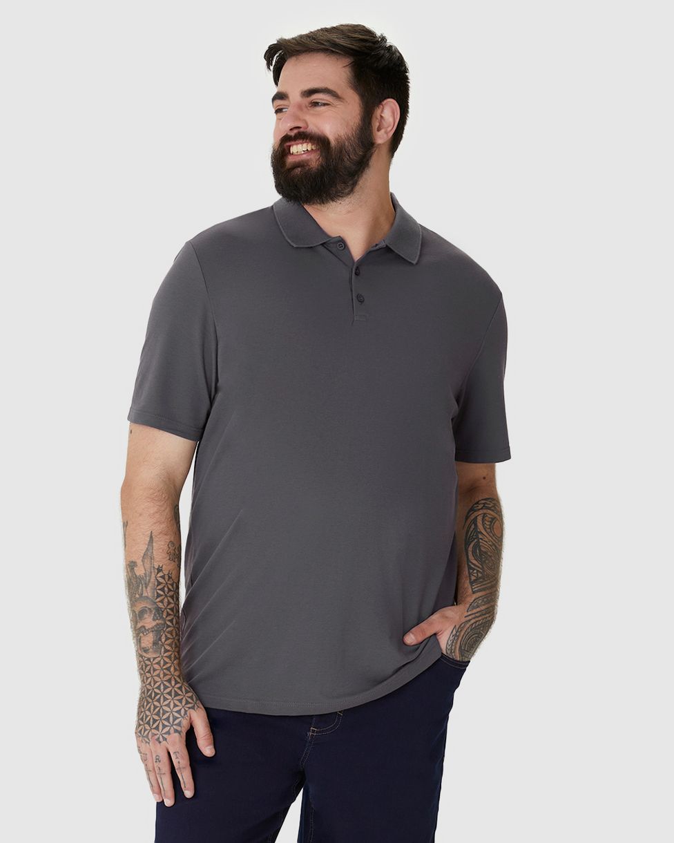 Camisa Polo Básica Masculina Plus Size Em Piquet Stretch