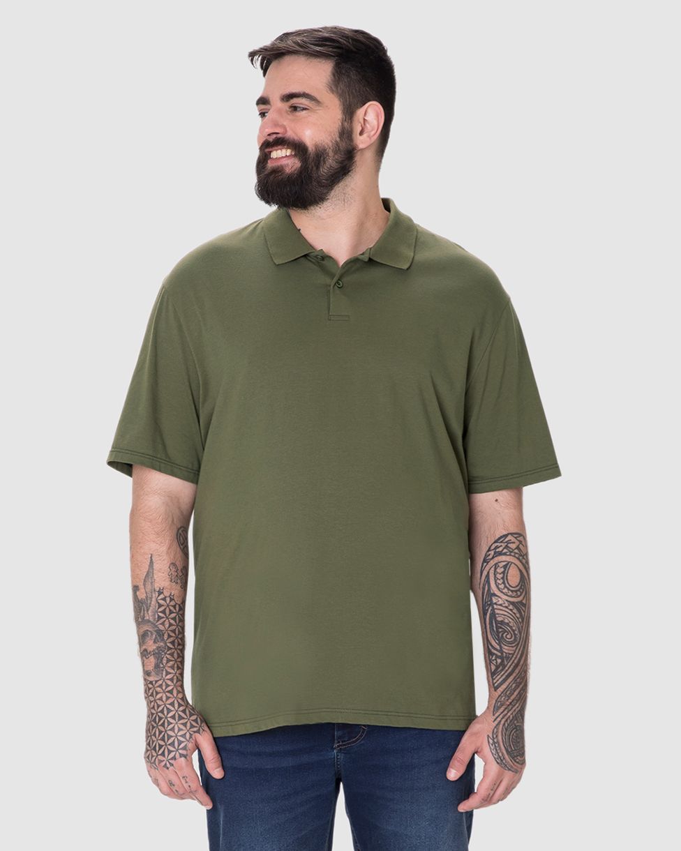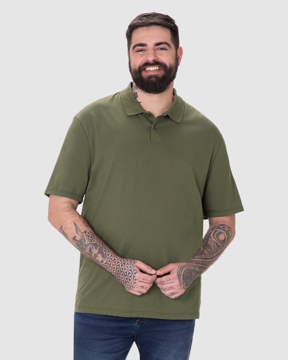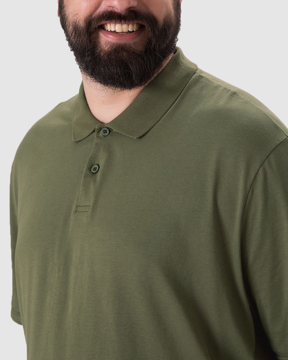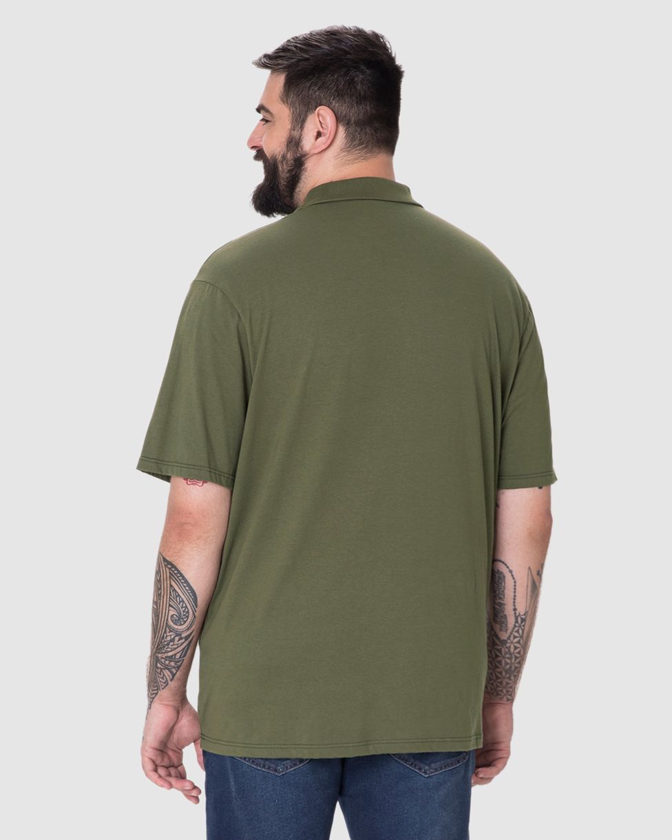 Camisa Polo Básica Masculina Plus Size Peitilho Frontal Em Algodão Verde - G1