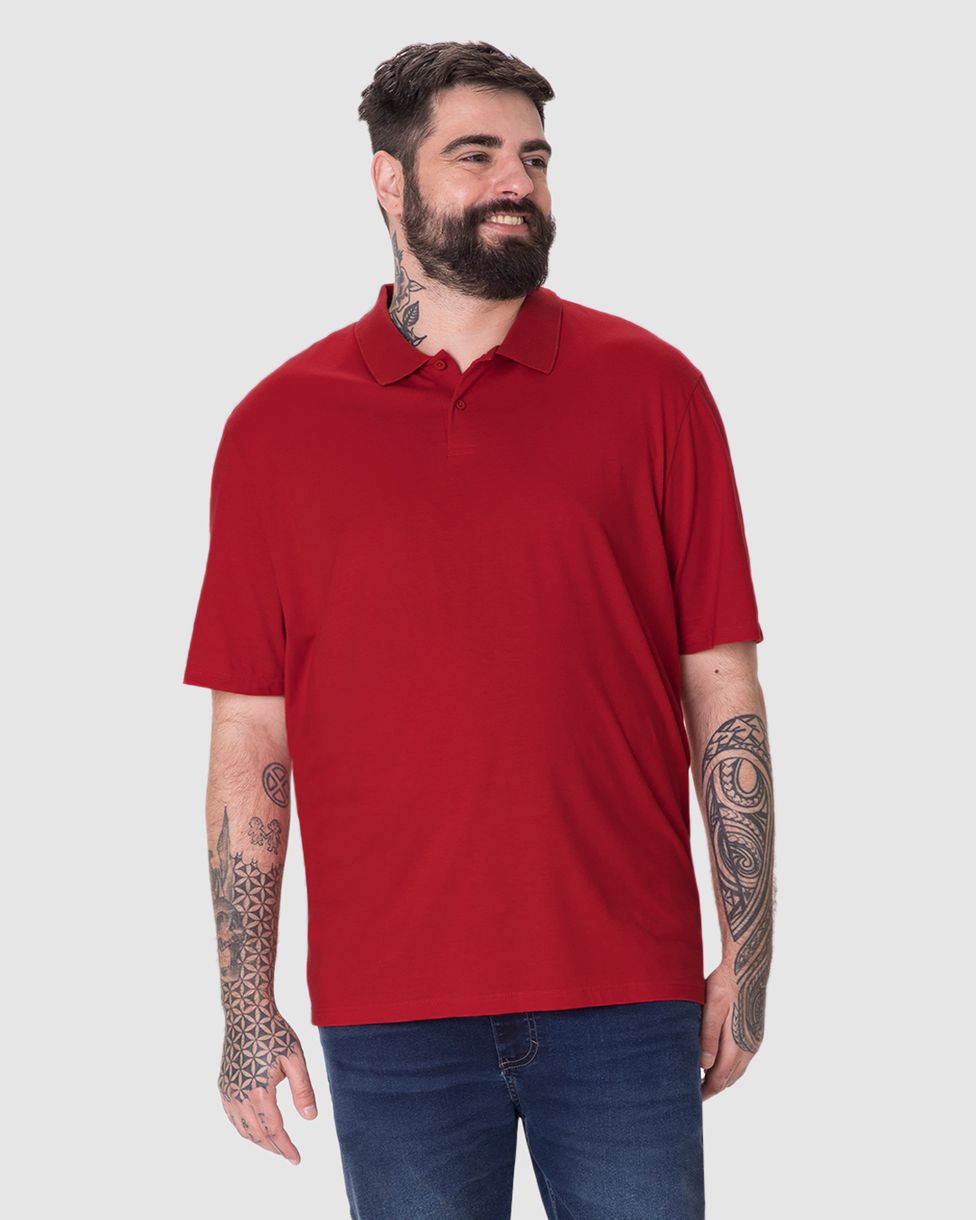 Camisa Polo Básica Masculina Plus Size Peitilho Frontal Em Algodão Vermelho - G1