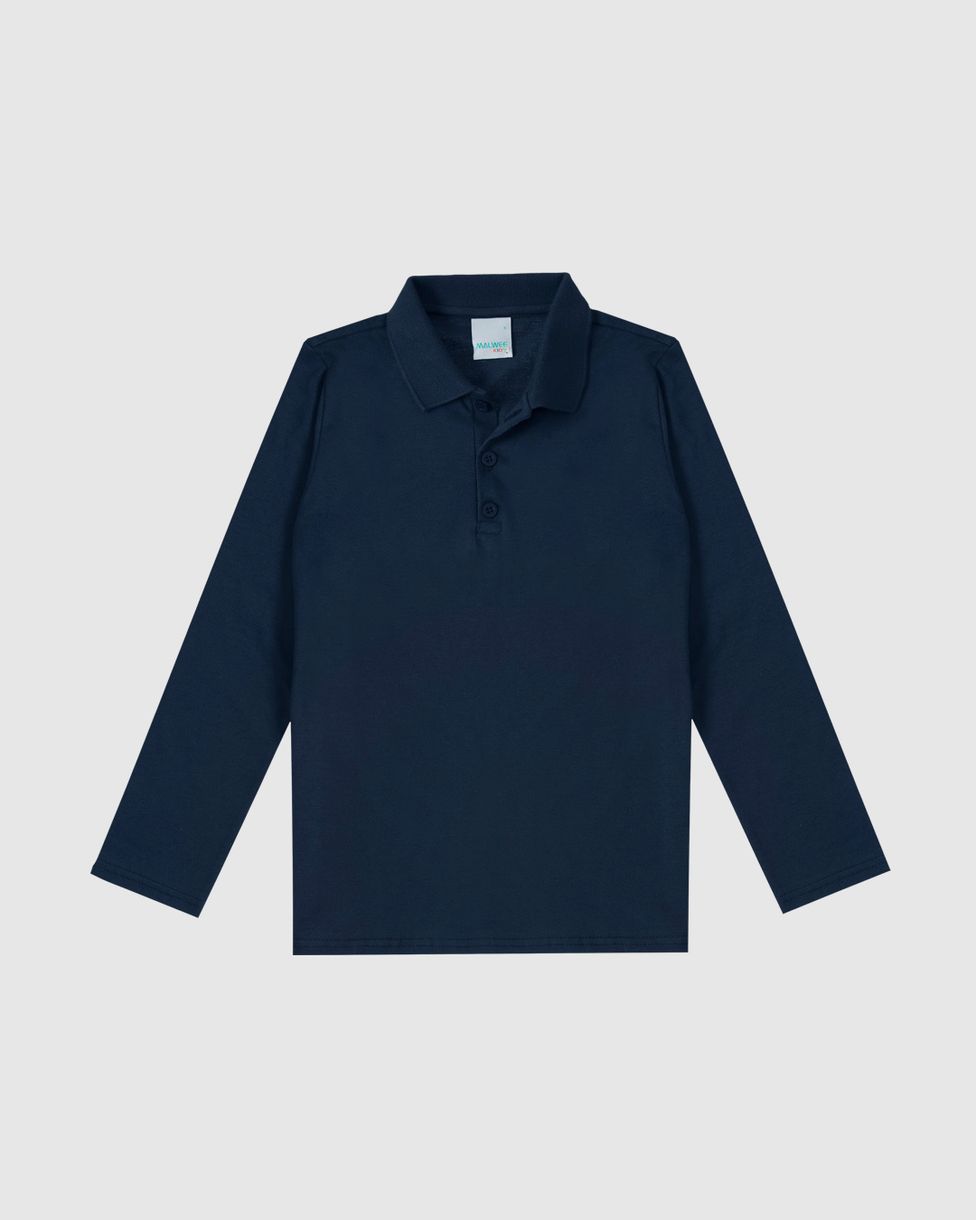 Camisa Polo Infantil Menino Manga Longa Em Algodão Malwee Kids