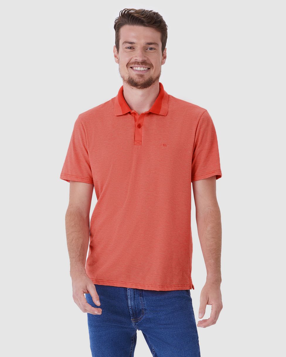 Camisa Polo Masculina Abertura Lateral Em Malha Fio A Fio Laranja - G