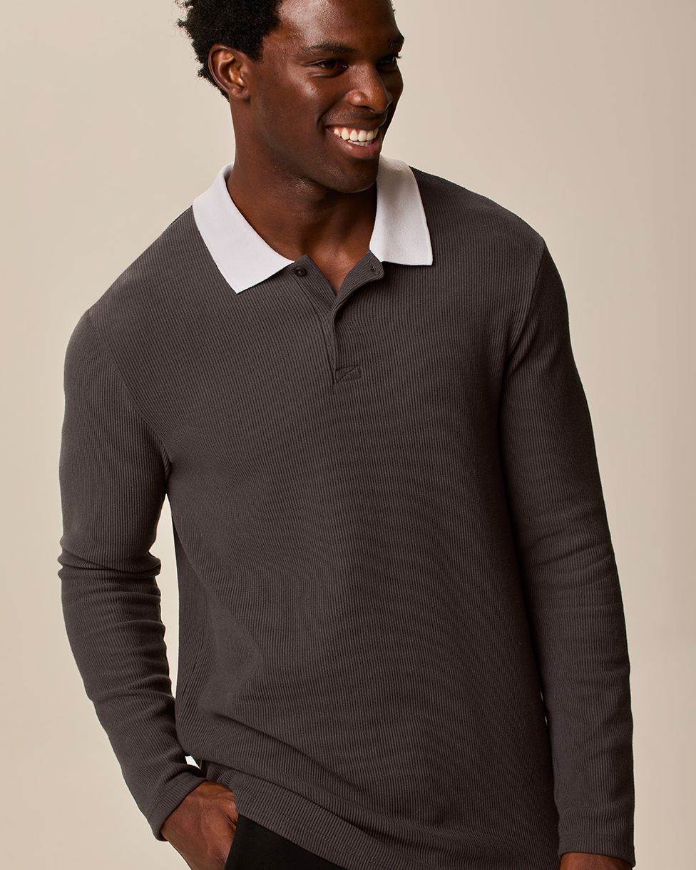 Camisa Polo Masculina Manga Longa Detalhe Aplique Em Malha Texturizada