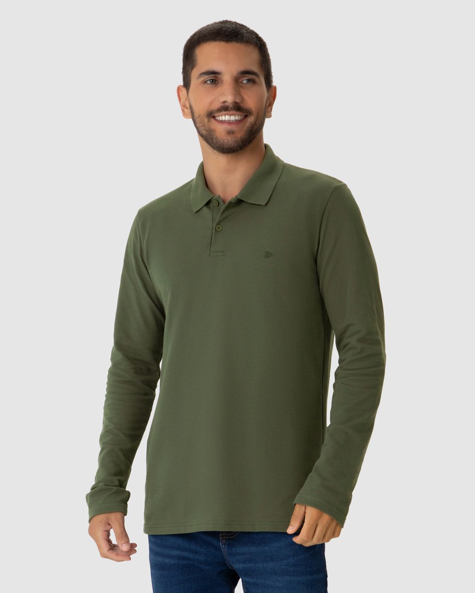 Camisa Polo Masculina Manga Longa Em Piquet Premium