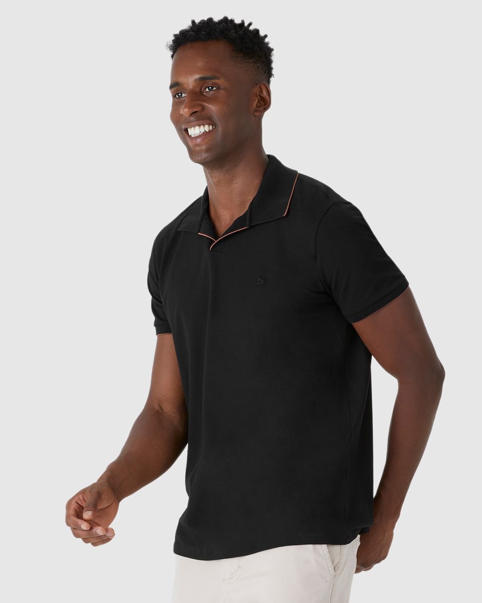 Camisa Polo Masculina Peitilho Sem Botões Em Piquet Stretch