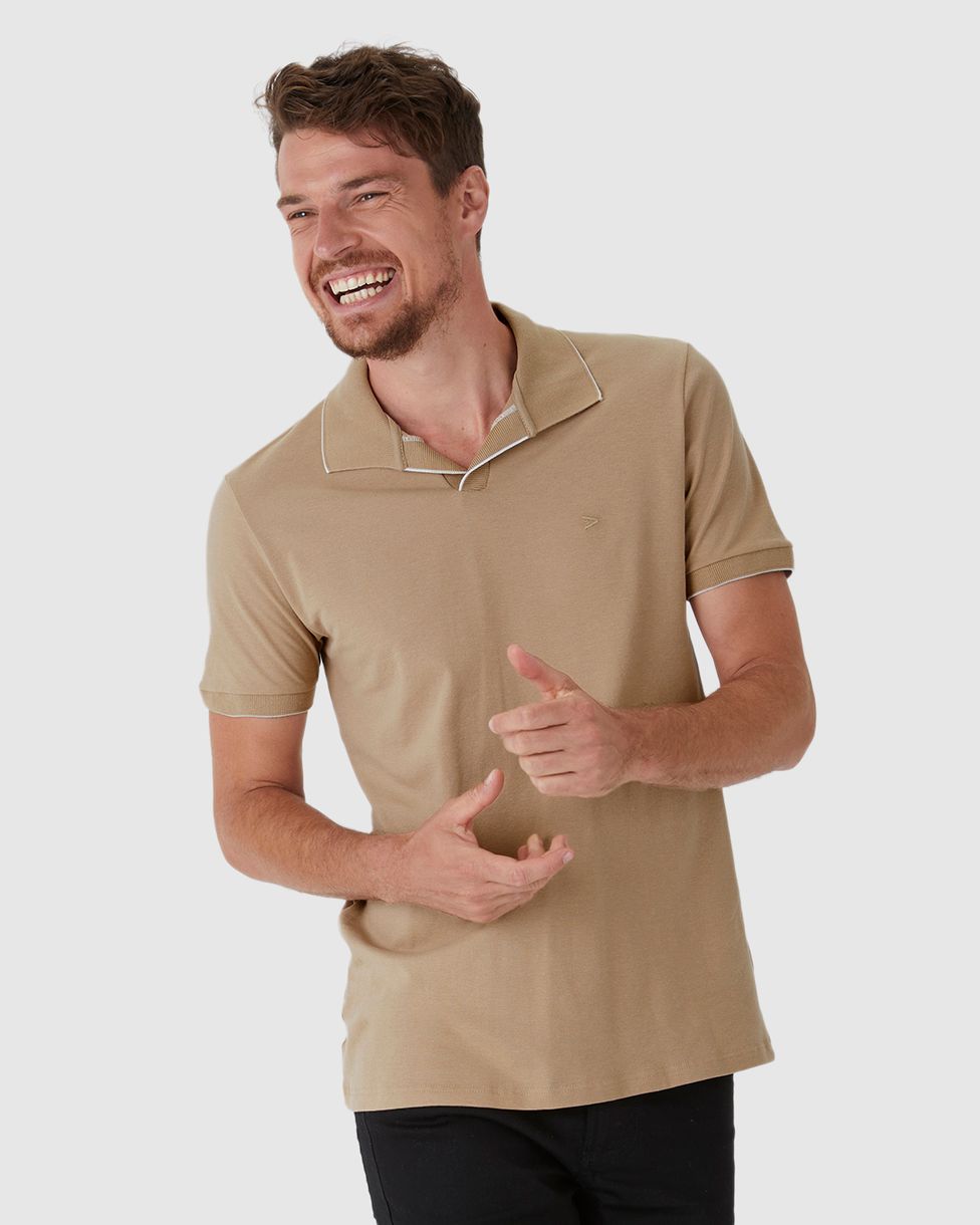 Camisa Polo Masculina Peitilho Sem Botões Em Piquet Stretch