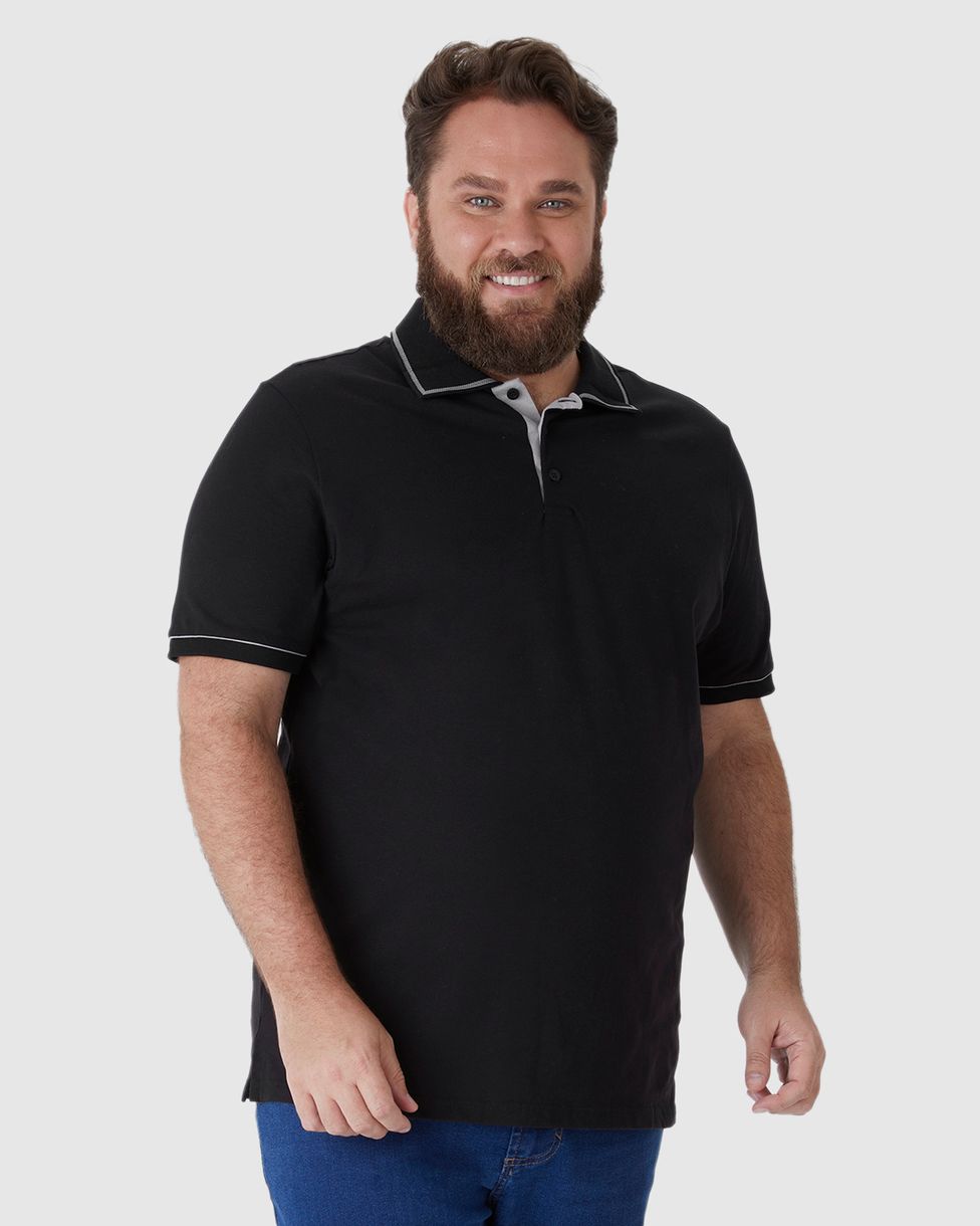 Camisa Polo Masculina Plus Size Abertura Lateral Em Piquet Stretch