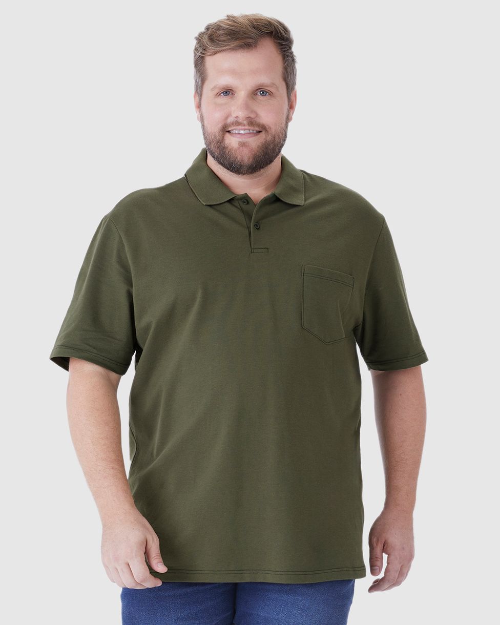 Camisa Polo Masculina Plus Size Bolso Funcional Frontal Em Piquet Stretch Verde - G1