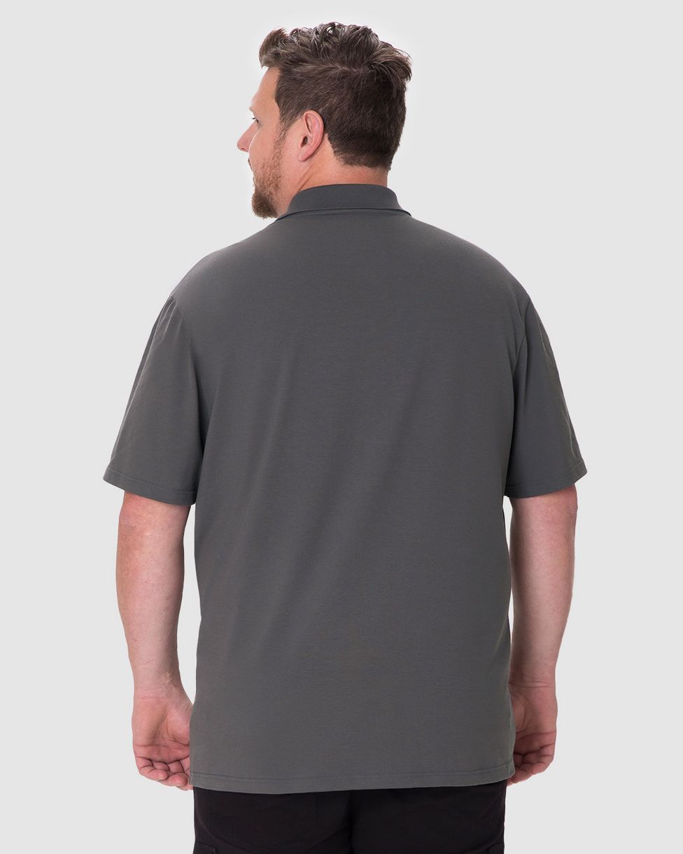 Camisa Polo Masculina Plus Size Bolso Funcional Frontal Em Piquet Stretch Cinza - G1