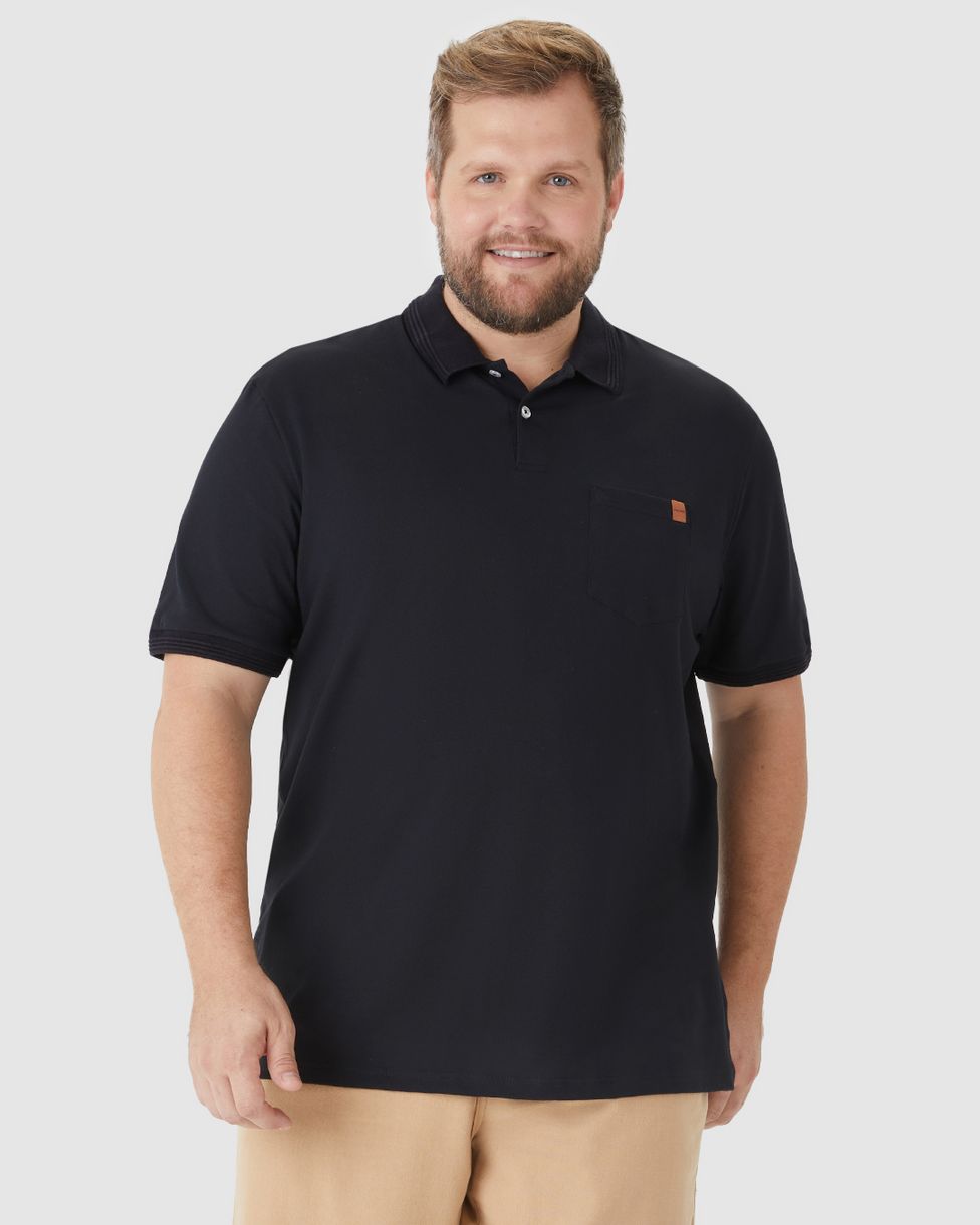 Camisa Polo Masculina Plus Size Detalhe Bolso Funcional Em Algodão Preto - G1