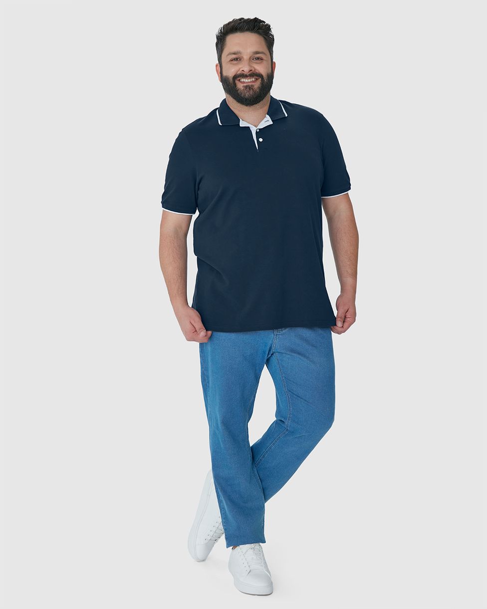 Camisa Polo Masculina Plus Size Em Piquet Stretch