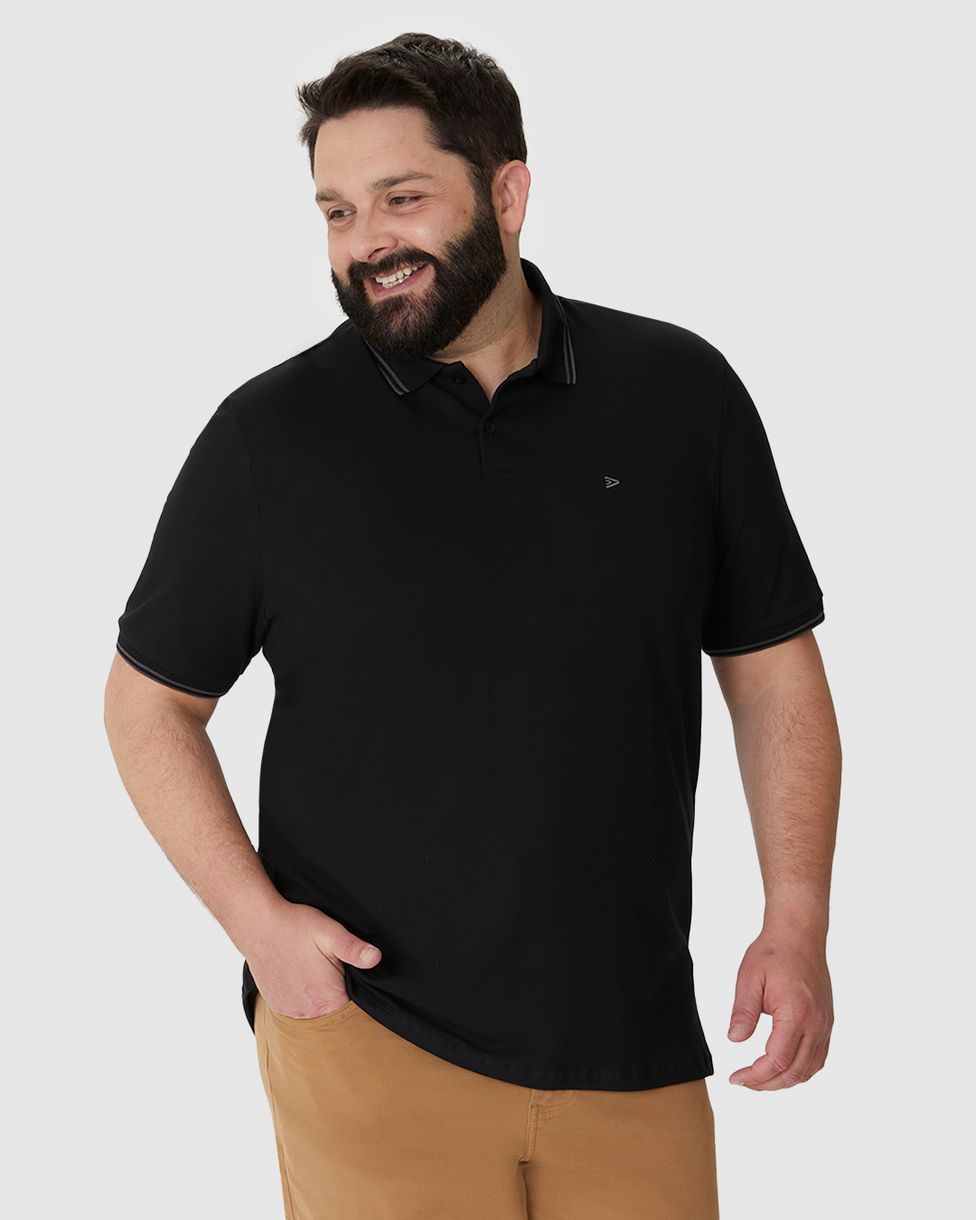 Camisa Polo Masculina Plus Size Peitilho Frontal Em Piquet Stretch