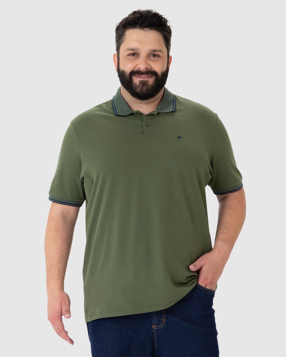 Camisa Polo Masculina Plus Size Peitilho Frontal Em Piquet Stretch