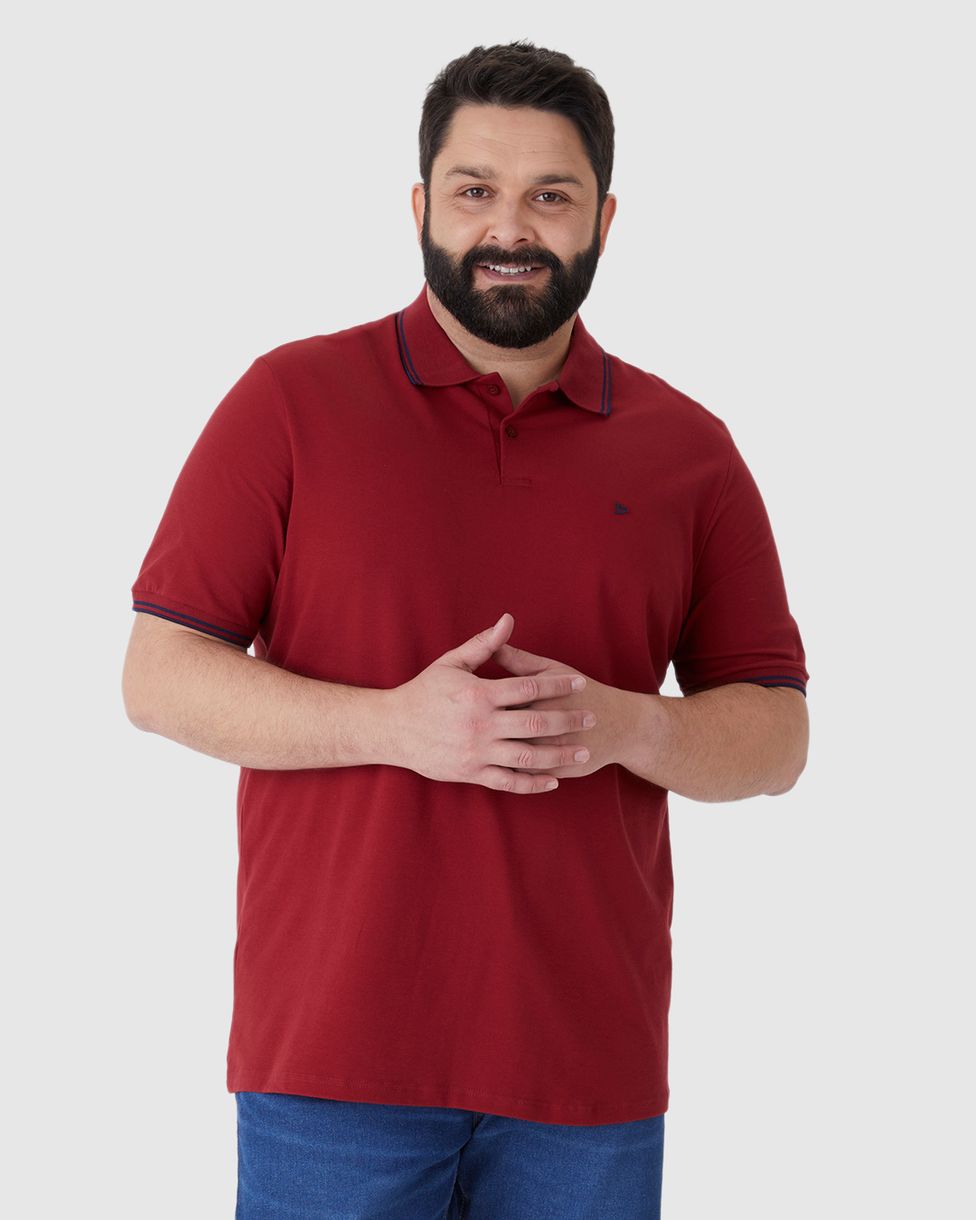 Camisa Polo Masculina Plus Size Peitilho Frontal Em Piquet Stretch