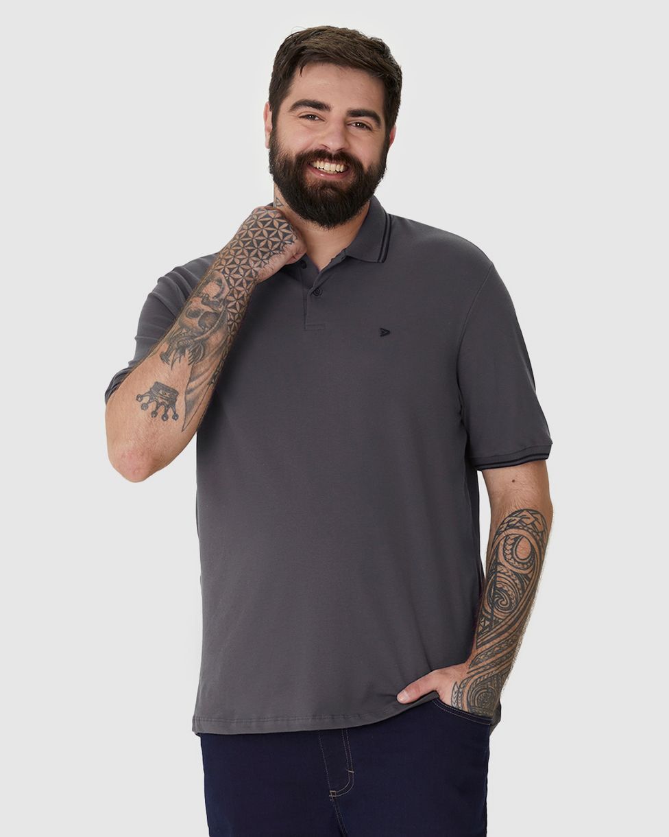 Camisa Polo Masculina Plus Size Peitilho Frontal Em Piquet Stretch
