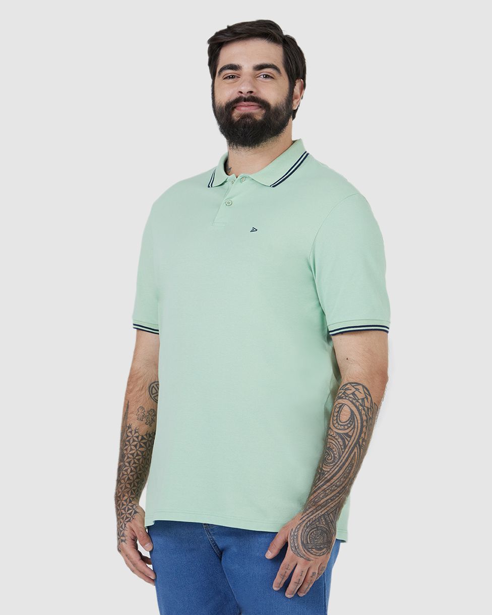 Camisa Polo Masculina Plus Size Peitilho Frontal Em Piquet Stretch