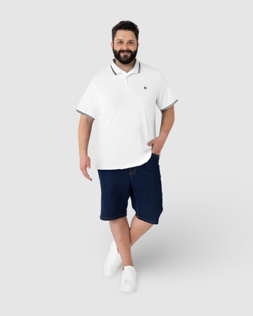 Camisa Polo Masculina Plus Size Peitilho Frontal Em Piquet Stretch