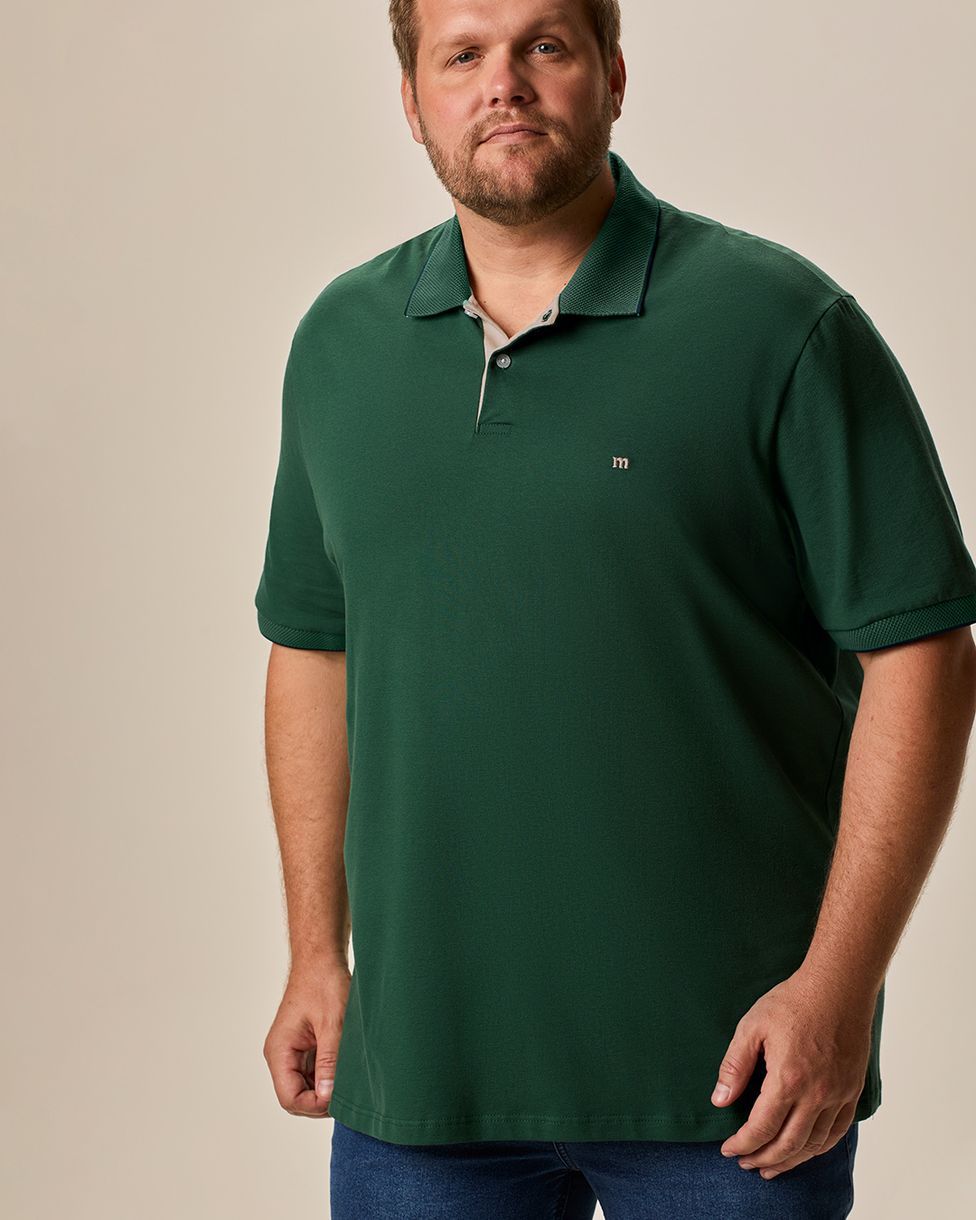 Camisa Polo Masculina Plus Size Regular Em Piquet Stretch Verde - G3