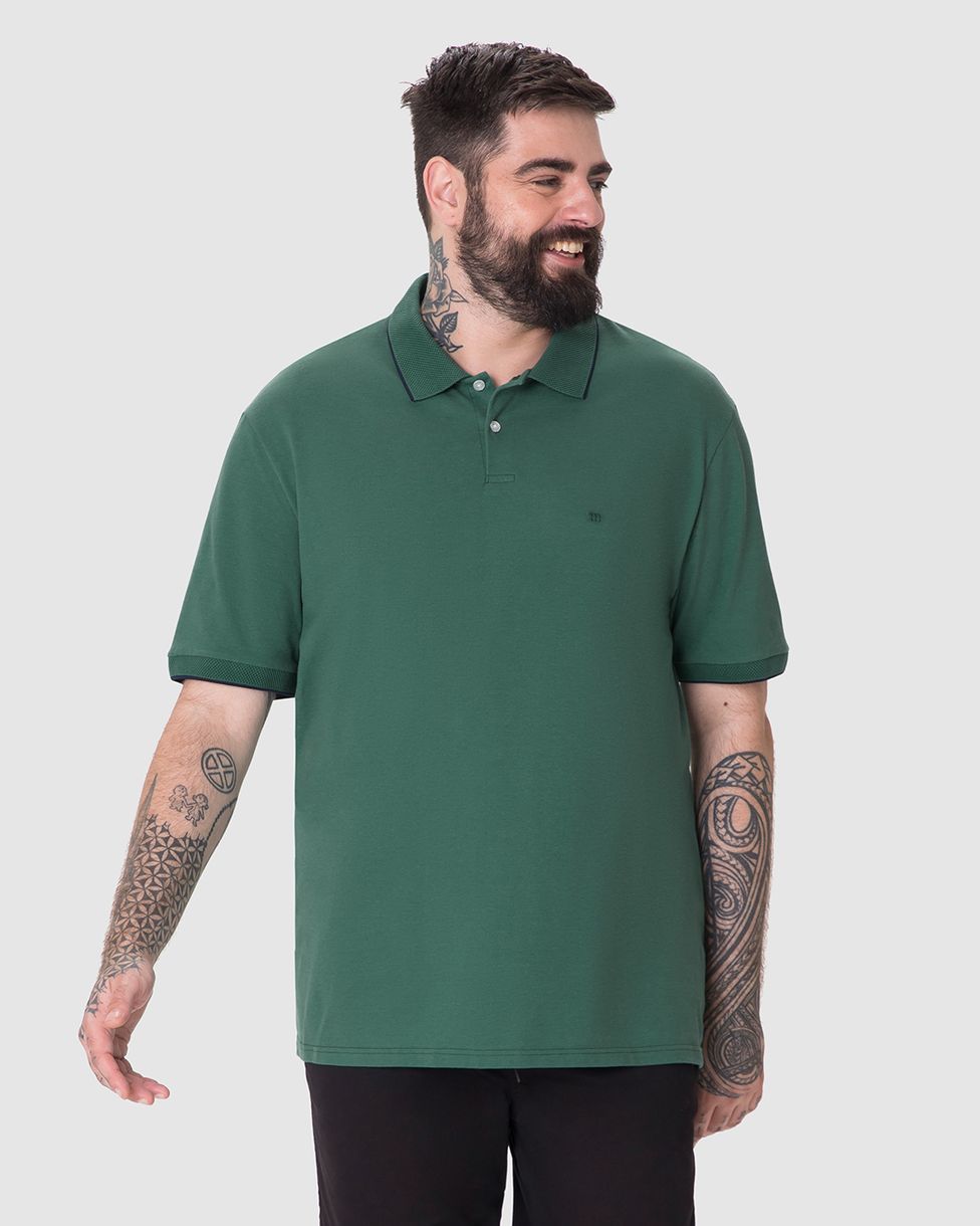 Camisa Polo Masculina Plus Size Regular Em Piquet Stretch Verde - G1