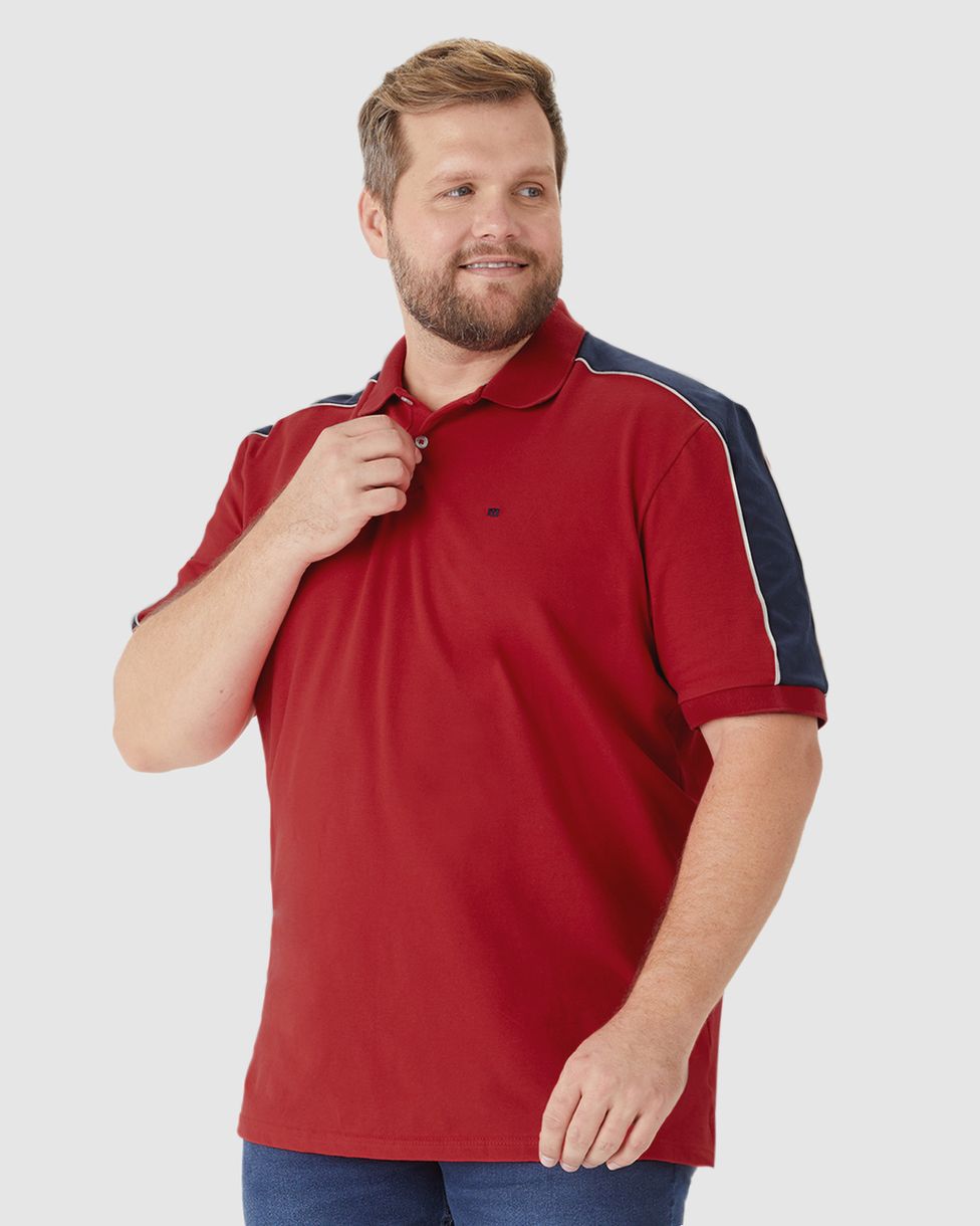 Camisa Polo Masculina Recorte Contraste Ombro Em Piquet Stretch Vermelho - G1