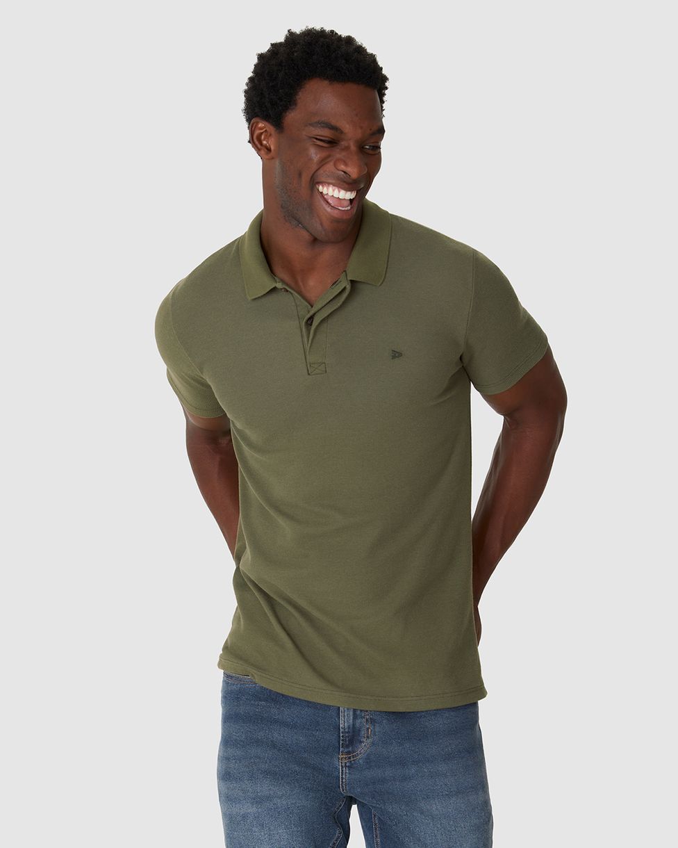 Camisa Polo Masculina Regular Bordado Peitoral Em Malha Texturizada