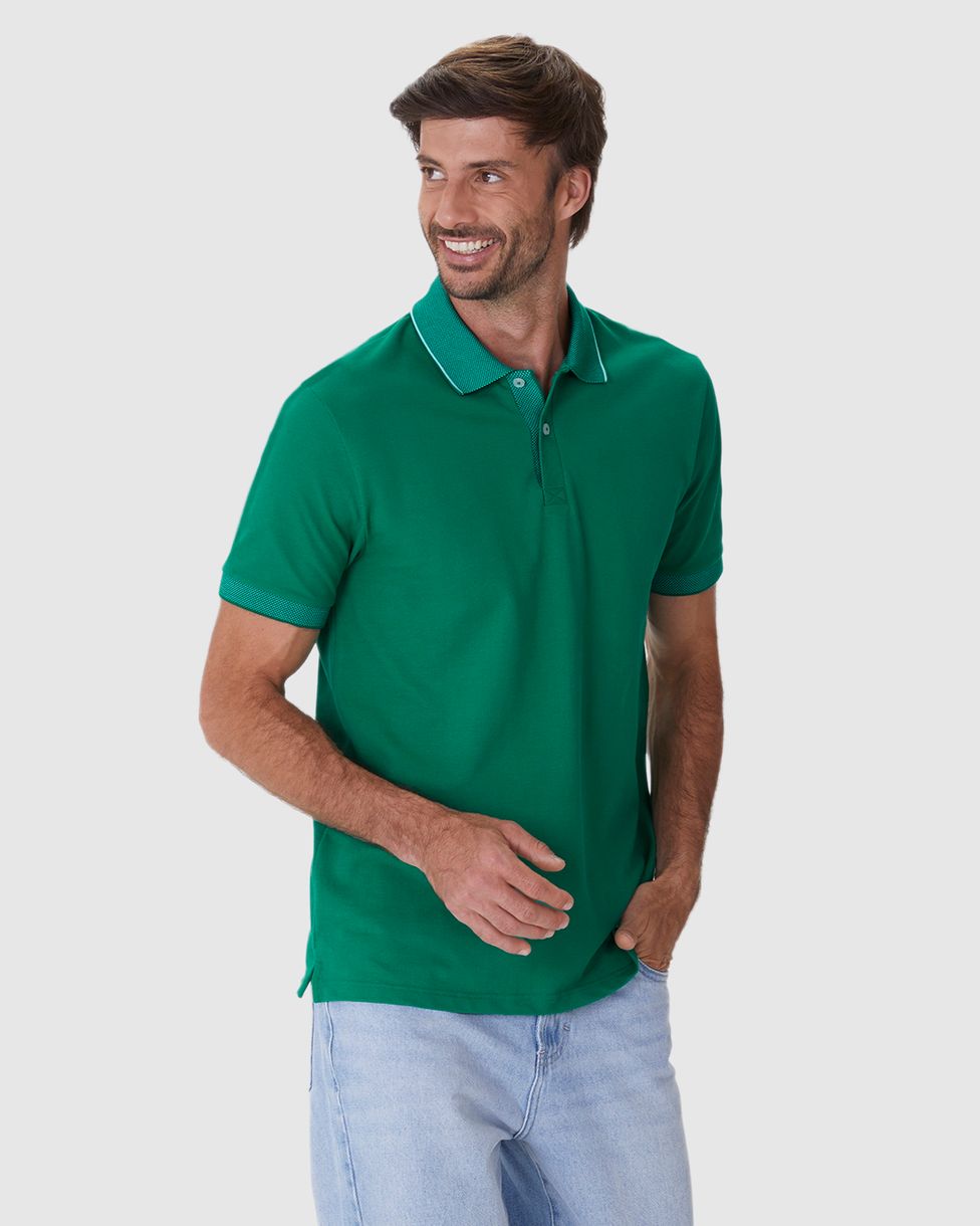 Camisa Polo Masculina Regular Detalhes Retilínea Em Piquet Premium Verde - G