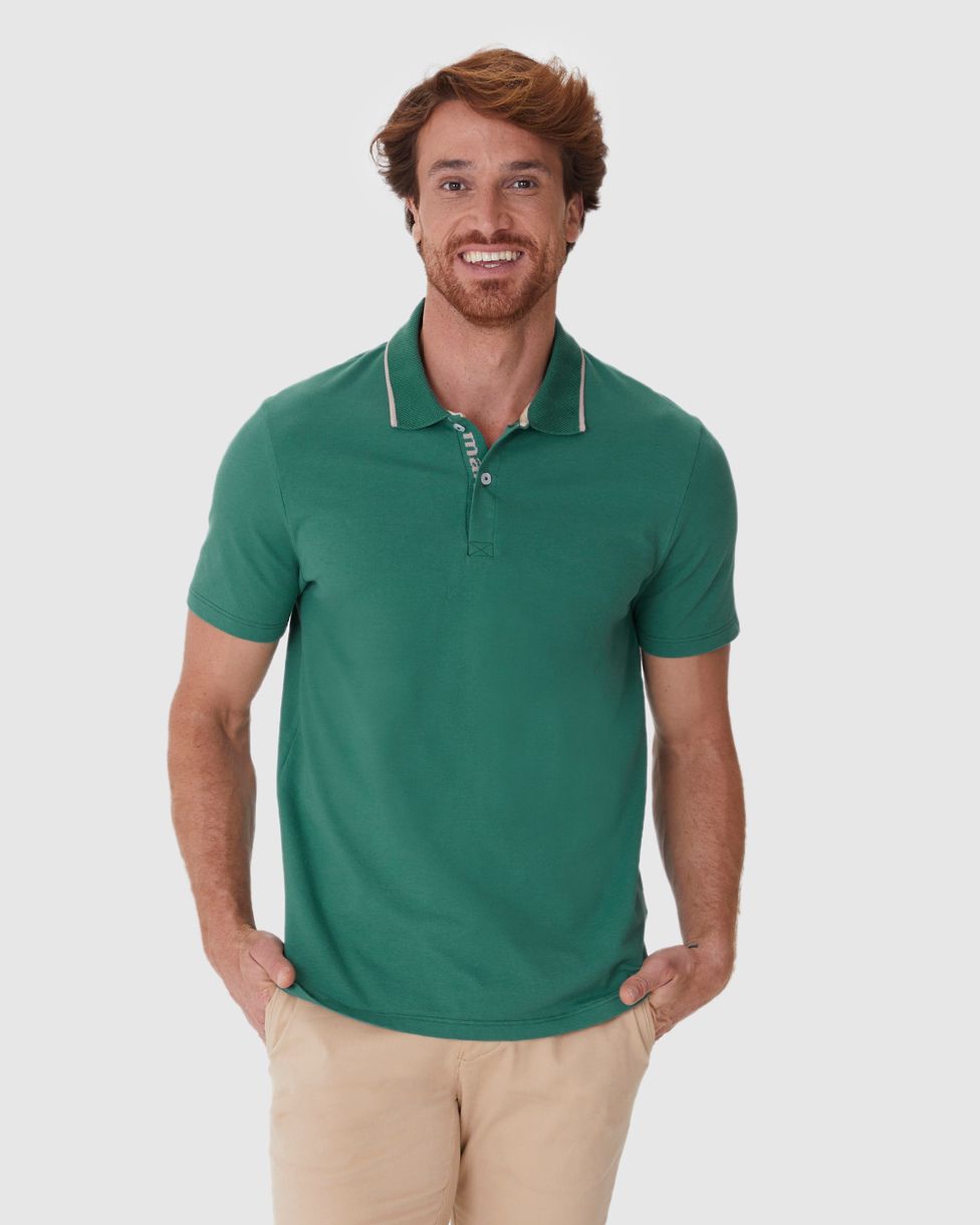 Camisa Polo Masculina Slim Peitilho Manga Curta Em Piquet Stretch Verde - G